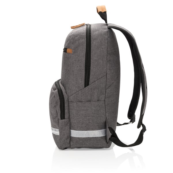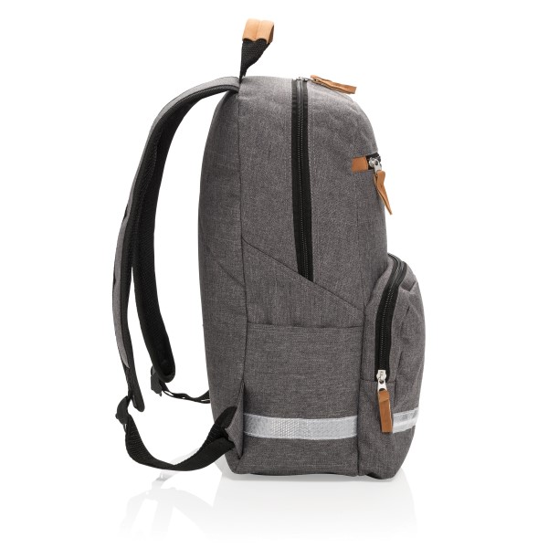 Ein Sicherheits LED Rucksack für alle Pendler. Aus 600D Two Tone Polyester mit trendigen braunen Details. Ein Hauptfach mit 13” Laptopfach, zwei Seitentaschen und 2 Seiten-Sleeves. Das LED mit 3 Einstellungen lässt sich vom Frontpanel aus bedienen. Inkl. 2x CR 2032 Knopfzellen.