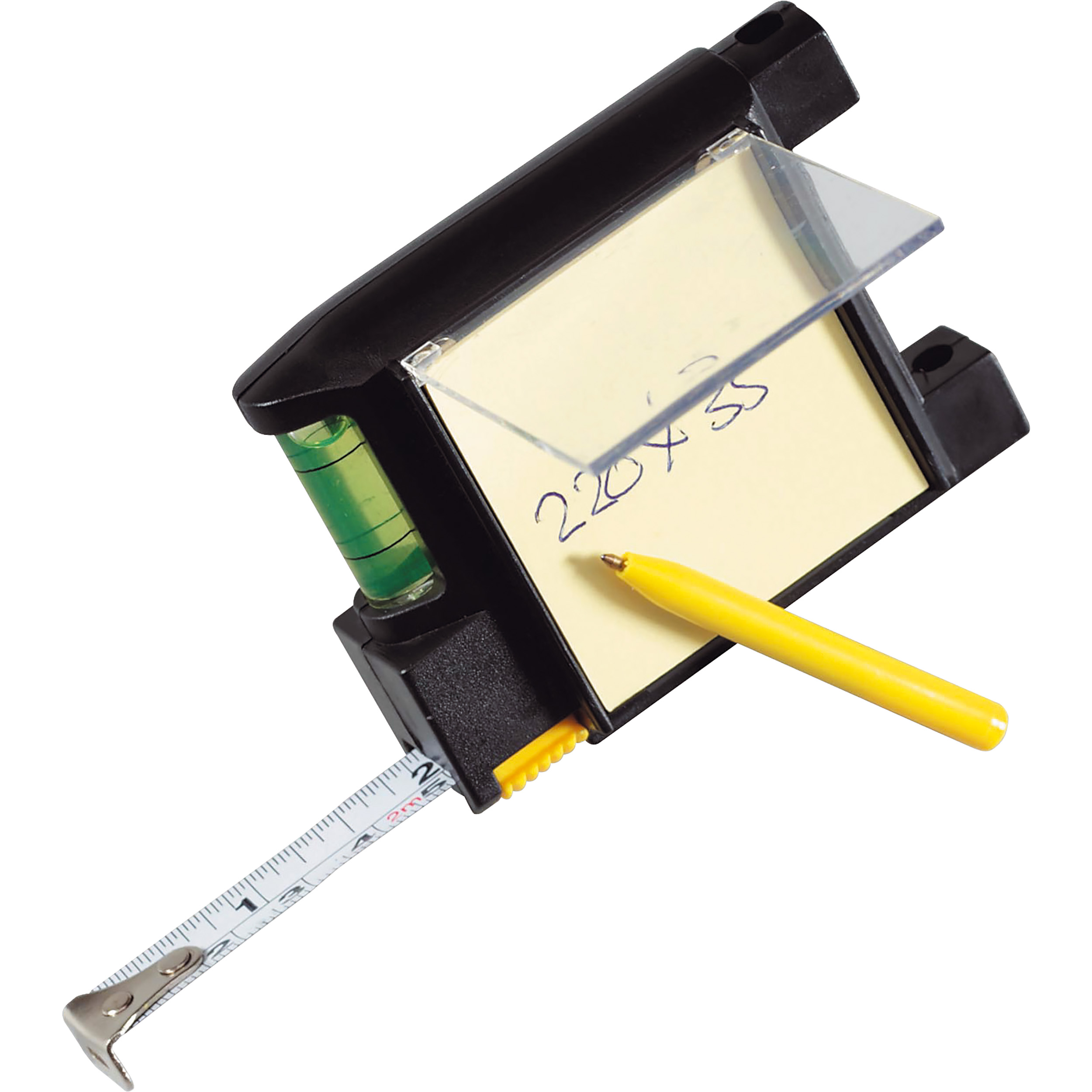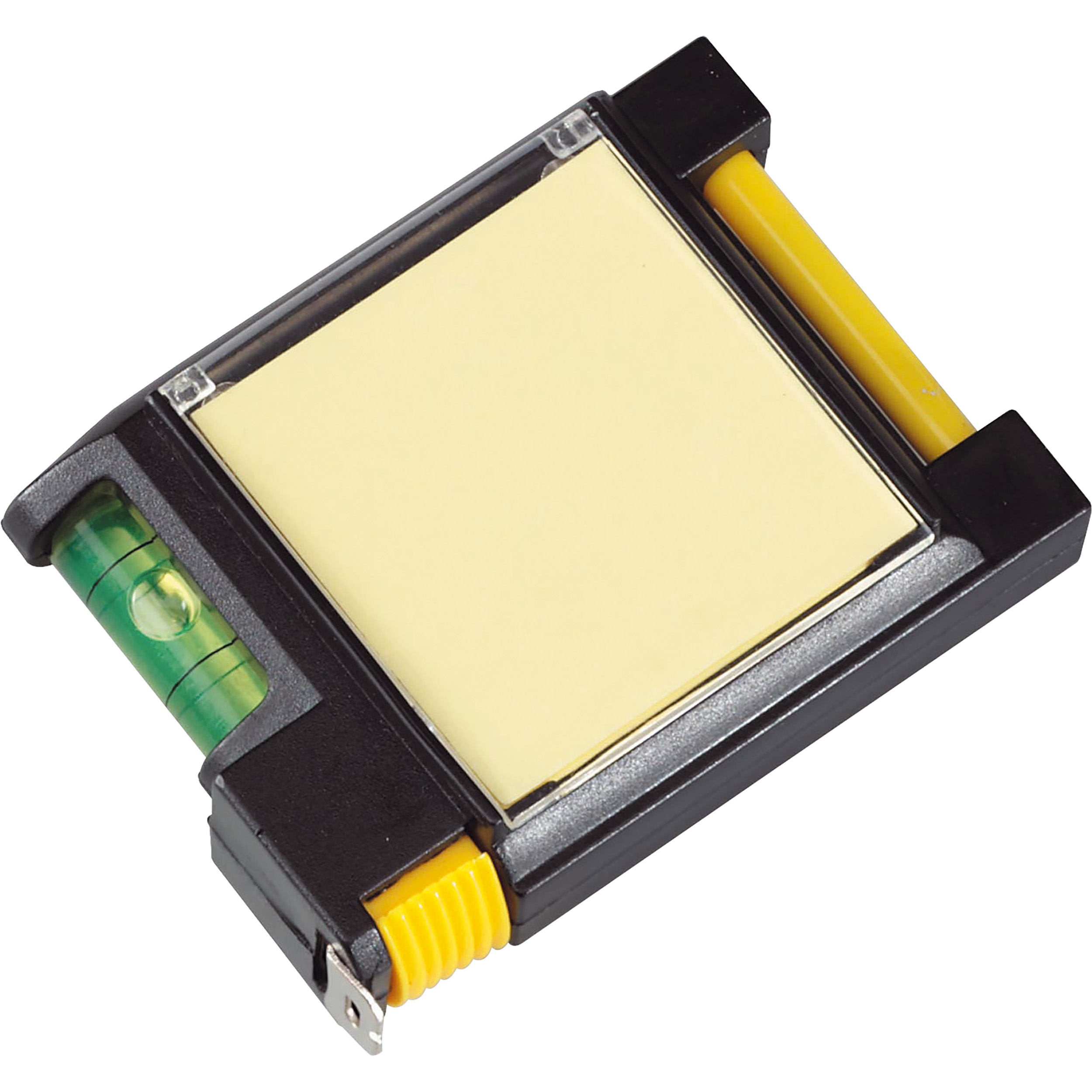2 Meter Stahlbandmaß aus Kunststoff mit Wasserwaage, Memoblock und Kugelschreiber. Damit sind Sie perfekt ausgerüstet. Ihren Werbedruck platzieren wir mittels Tampondruck auf dem transparenten Deckel.
