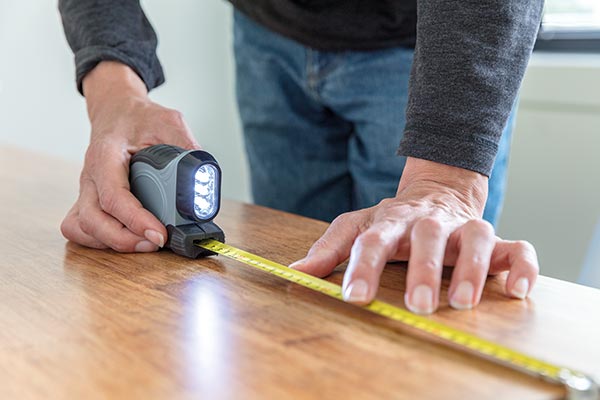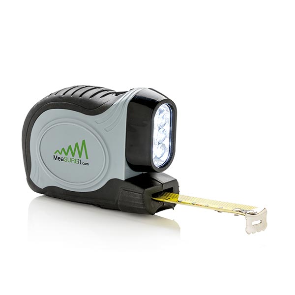 ABS Maßband mit 2 Funktionen. Das Band hat ein einziehbares 5m/19mm Stahlband mit Druckknopfverschlussmechanismus. Auf der Vorderseite befindet sich ein weißes LED-Licht als zusätzliche Lichtquelle, das mit dem Druckknopf oben an- und ausgeschaltet werden kann. Auf der Rückseite befindet sich ein Gürtelclip. Inklusive Batterien für den direkten Gebrauch.