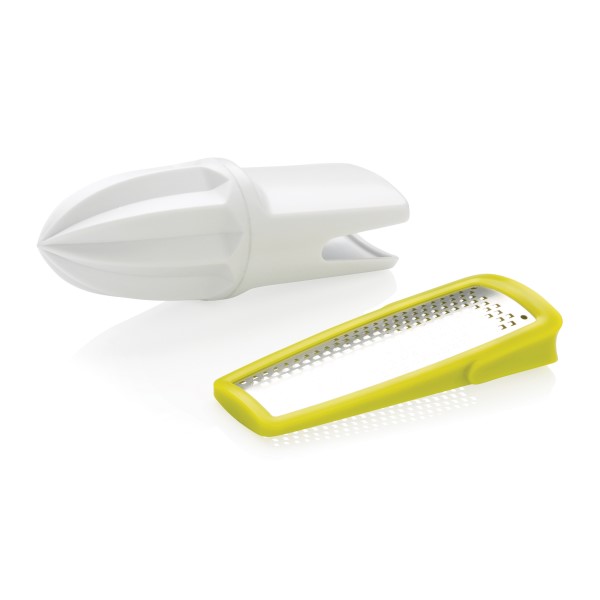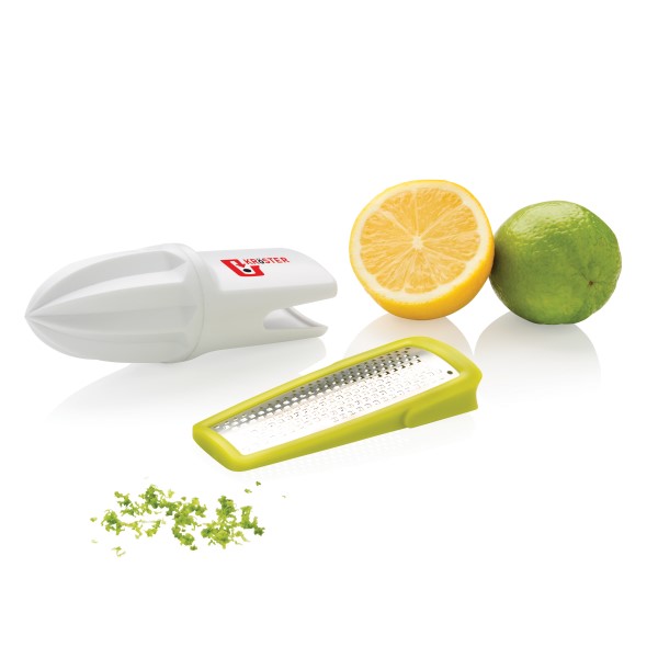 Mit diesem 2-in-1 Küchenset wird es nie wieder so einfach sein, Ihre Zitrusfrüchte zu pressen und die Schale zu raspeln.