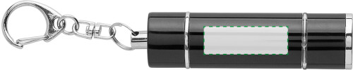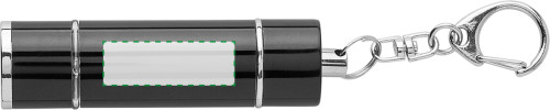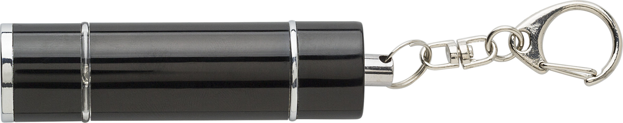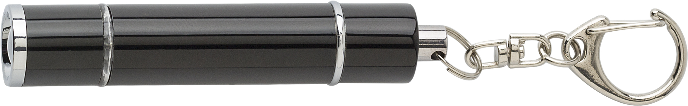 Schlüsselanhänger aus Kunststoff und Aluminium mit einer Taschenlampe.