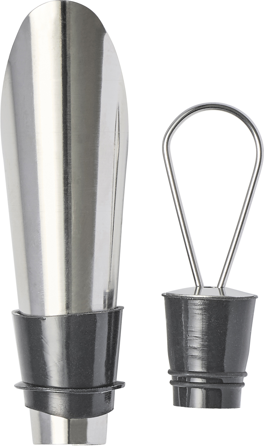 2-teiliges Sommelierset “Rioja“ aus Edelstahl, bestehend aus einem Kellnermesser und einem Verschluss mit Ausgießer.