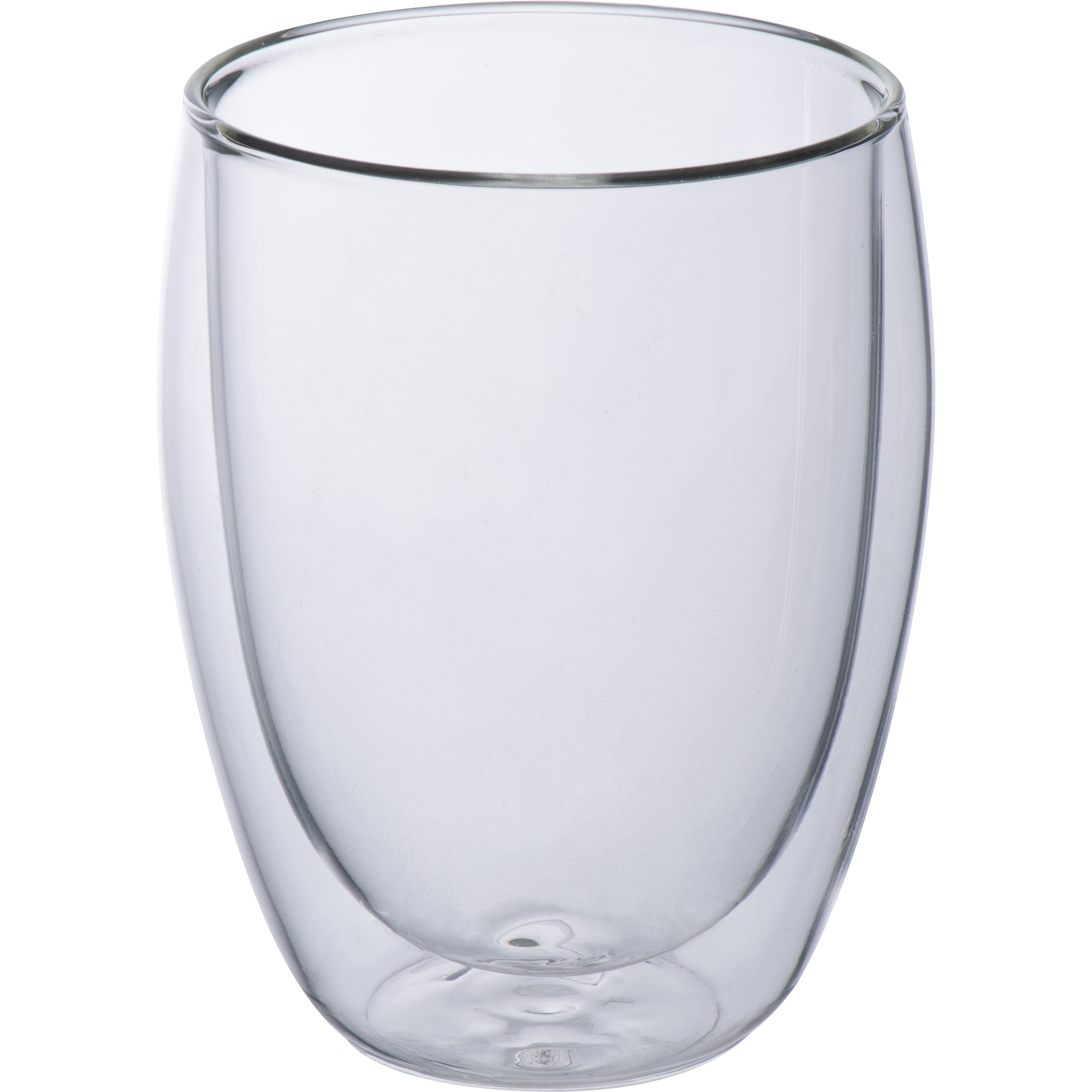 2er Set doppelwandige Cappuccinotassen aus Glas. So verbrennt man sich nicht die Finger und das Getränk bleibt warm. Die Werbung wird auf das Glas gedruckt.