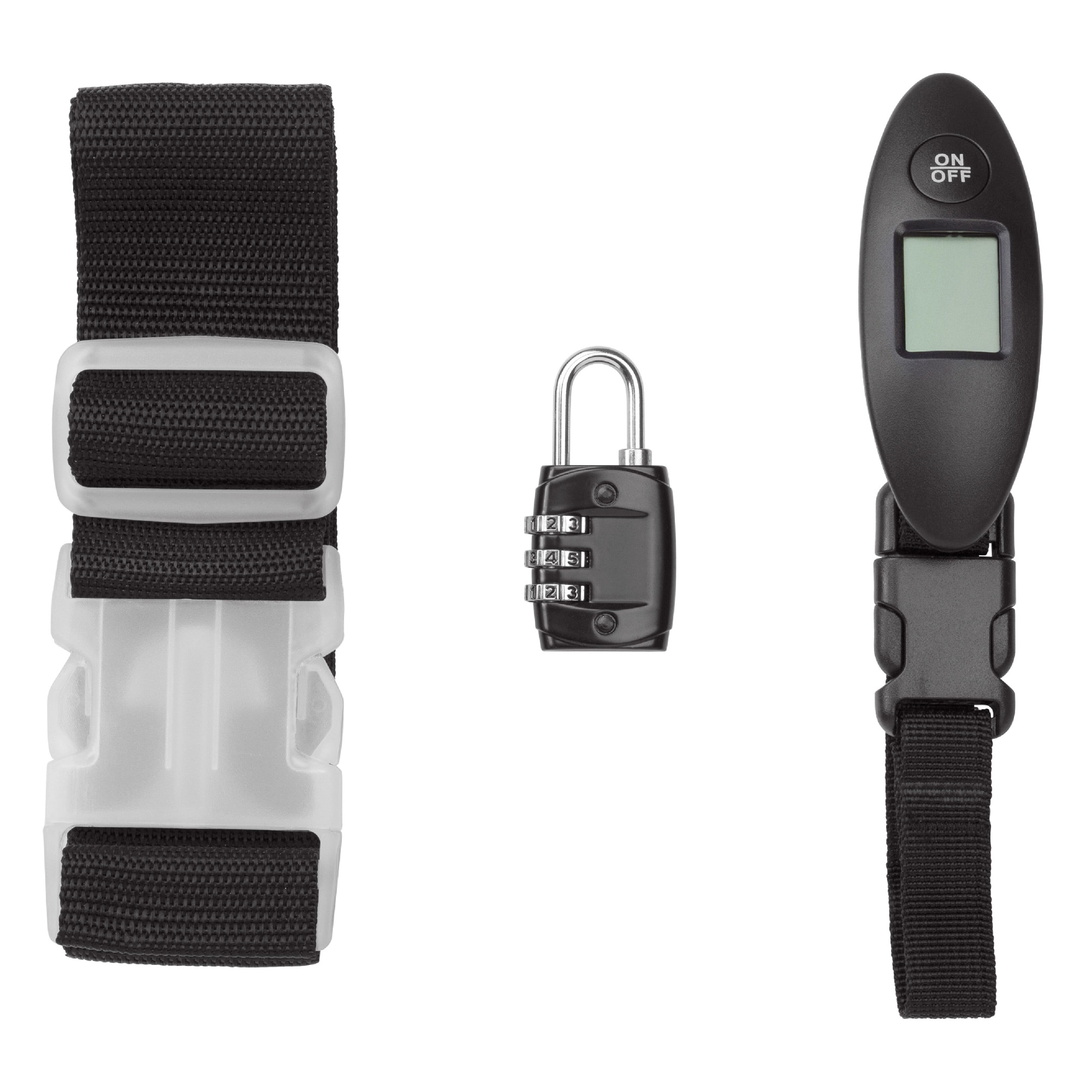 Sie sind gut auf Ihre Reise vorbereitet. Mit der Gepäckskala gehören Übergepäckgebühren der Vergangenheit an. Dank des Vorhängeschlosses und des Koffergurtes können Sie sicher sein, dass Ihre Sachen in Ihrem Koffer sicher sind.