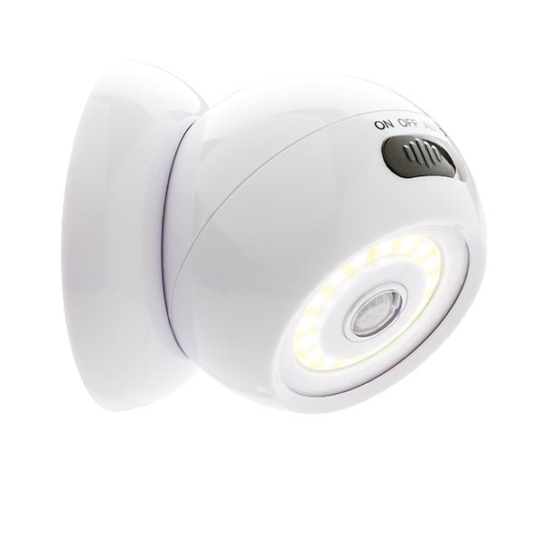 Ultrahelle COB Leuchte aus ABS mit magnetischer Halterung und doppelseitigem 3M Klebestreifen um die Basis auf allen glatten Oberflächen zu befestigen. Die Lampe verfügt über einen Bewegungssensor und wird Ihren Weg selbst ohne an- und ausschalten erhellen. Die Lampe selbst hält magnetisch an der Basis und kann nun in alle Richtungen gedreht werden. Inkl. Batterien.