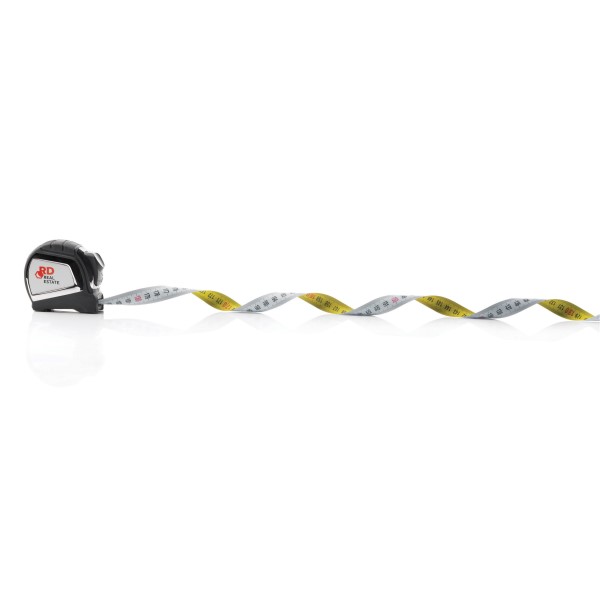 Ein hochwertiges 5m/19mm Maßband mit doppelseitiger Skala für horizontale und vertikale Messungen und Auto Stop Band, um die Arbeit zu erleichtern. Geschütztes Design®