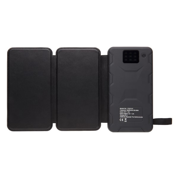 8.000mAh Solarpowerbank mit 3 qualitativ hochwertigen Polycystalline Panels für schnelles Aufladen. Die Panels können ausgefahren werden um eine größere Fläche Sonnenlicht aufzunehmen. Das grüne Licht zeigt an, ob das Sonnenlicht stark genug zum Gebrauch der Powerbank ist. Die Powerbank ist geeignet für Smartphones sowie Tablets. Die Powerbank verfügt über eingebautes LED Licht. Die Hülle ist aus modernem PU. Input 5V/2A Output 5V/2.1A.