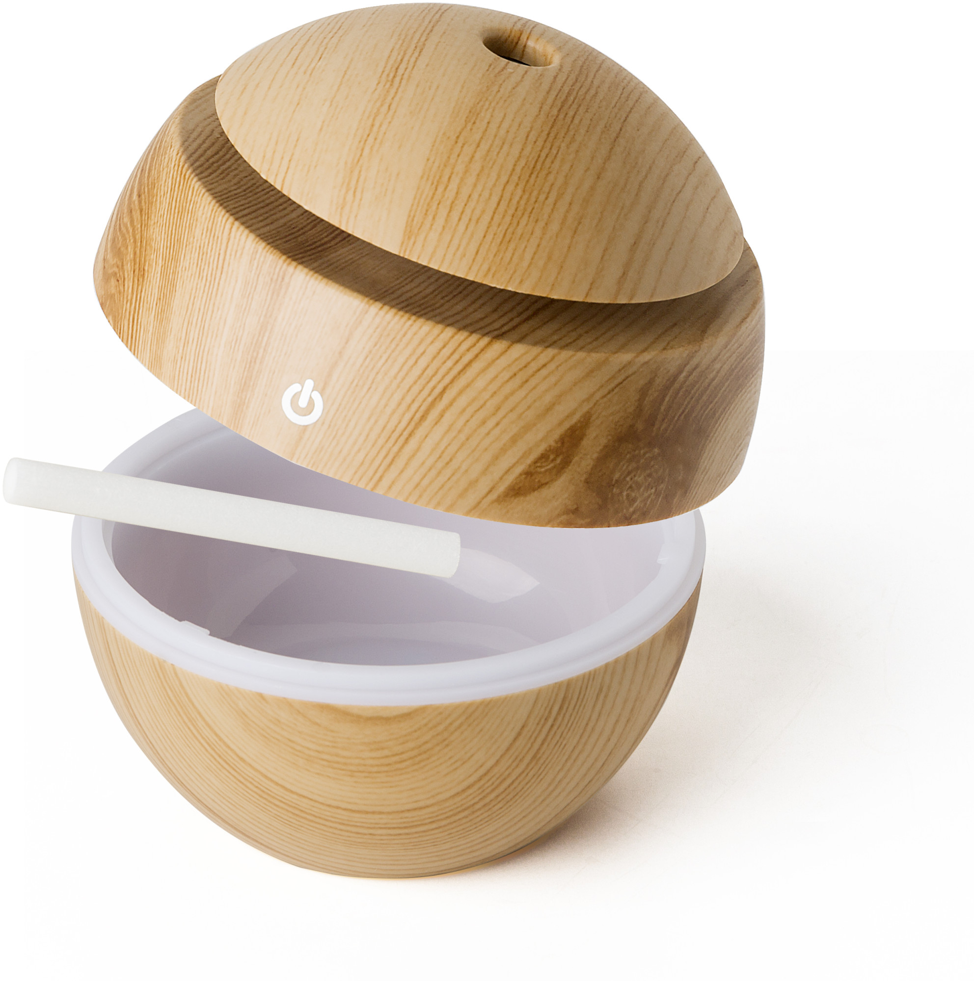 ABS-Luftbefeuchter mit Holzoptik. Mit farbwechselnden LED-Leuchten. Für Räume bis zu 25m2. Wird ohne Flüssigkeit geliefert. Einzeln verpackt in einer braunen Kartonbox.