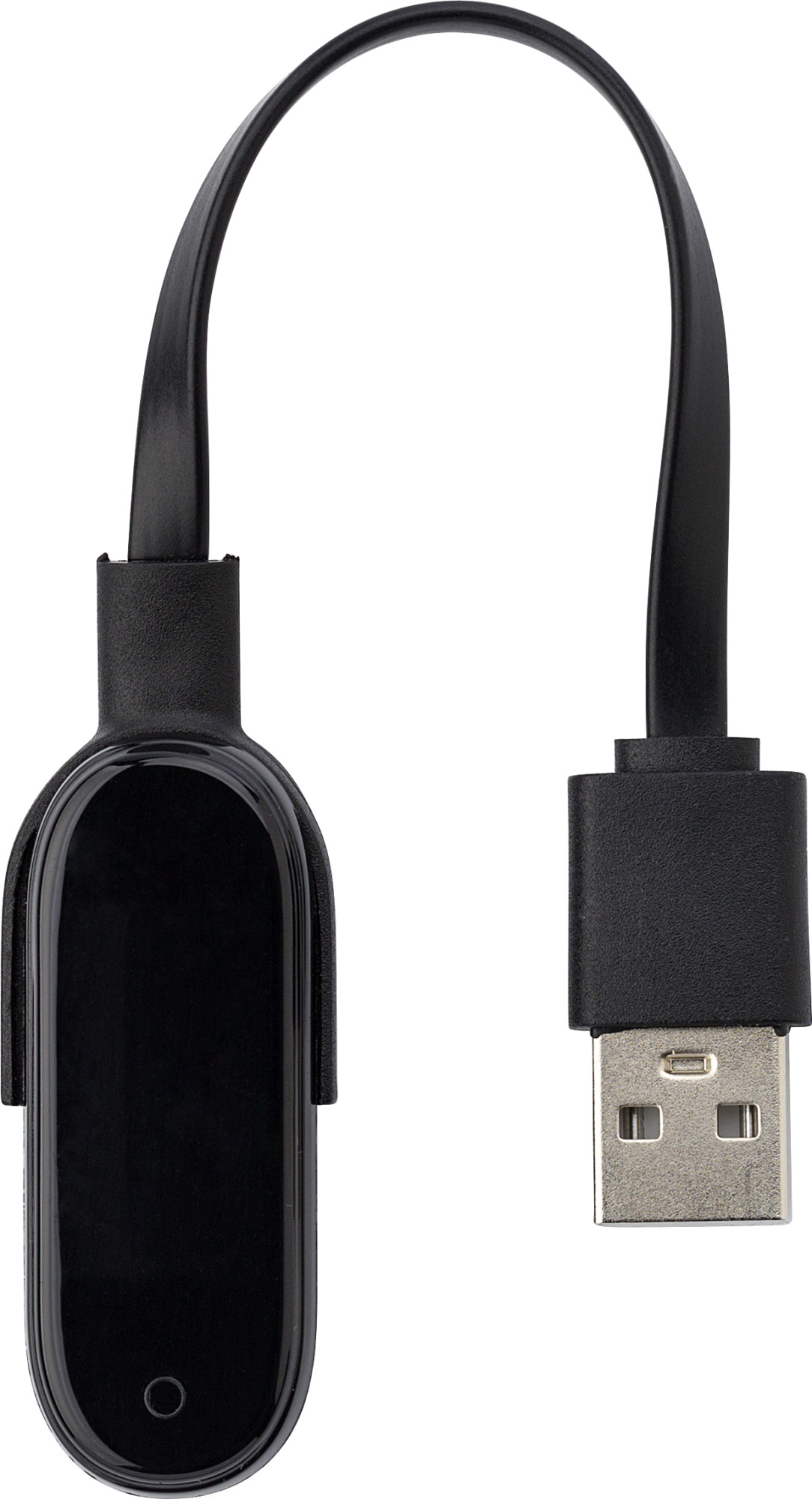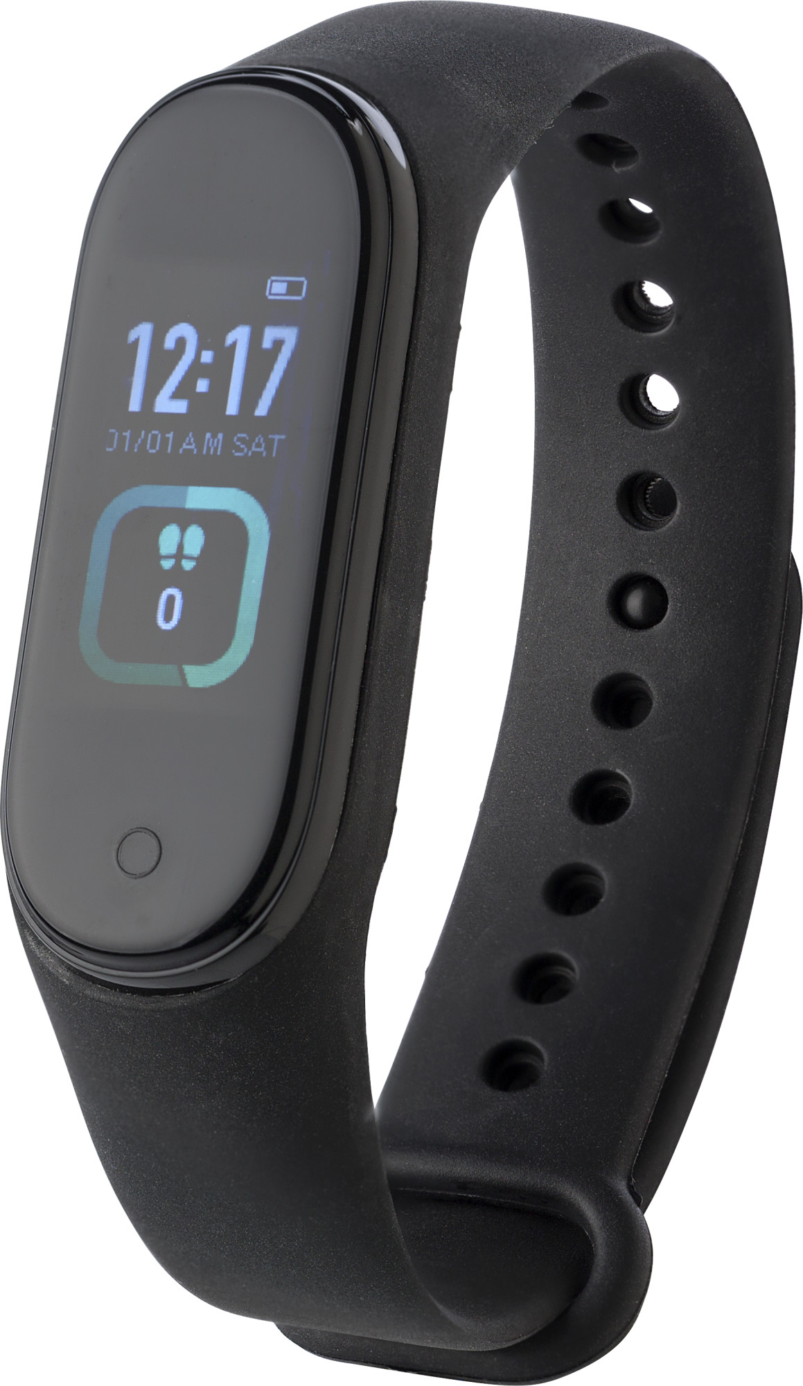 ABS und PC Smartwatch mit TPU-Armband. Die Uhr hat ein 0,96”-TFT-Display und ist wasserdicht nach IP65. Funktionen: Zeit, Schritte, Entfernung, Kalorien, Herzfrequenz und mehr. Einschließlich USB-Kabel.
