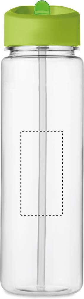 Trinkflasche aus RPET. Klappbares Mundstück aus PP mit Trinkhalm. Füllmenge: 650ml. Nicht für kohlensäurehaltige Getränke geeignet.