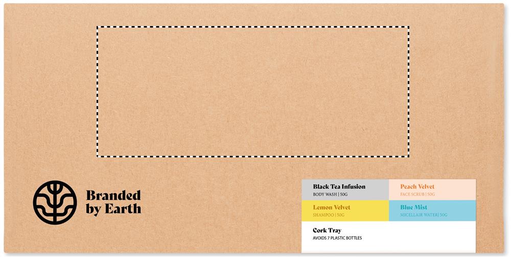 Unisex-Körperpflege-Set von Branded By Earth. Enthält je 50 g vegane Duschseife, Shampoo, Gesichtspeeling und Mizellenwasser in fester Form. Alle Teile sind in Papier gewickelt. Inkl. Seifenschale aus Kork. Lieferung in einer Box aus recyceltem Papier. Hergestellt in der EU. Kork ist ein 100% natürliches Material. Aufgrund seiner strukturellen Beschaffenheit und Oberflächenporosität kann das endgültige Druckergebnis pro Artikel Abweichungen aufweisen.