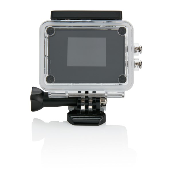 HD Sport Kamera mit 720p Auflösung auf dem neuesten Stand der Technik. Auf der Rückseite der Kamera befindet sich ein 1,5” TFT LCD Bildschirm zur direkten Wiedergabe Ihrer Videos. Der Speicher kann mittels Micro SD Karte um bis zu 32GB erweitert werden. Ohne zusätzlicher Micro SD Karte sind keine Aufnahmen möglich. Inkl. wasserdichtem Gehäuse. Aufnahmezeit bis zu 70min. Lieferung inkl. 11tlg. Zubehör.