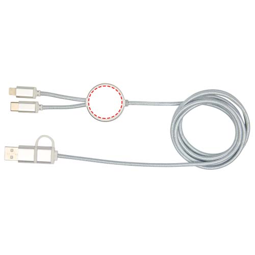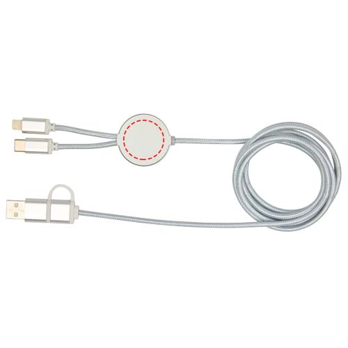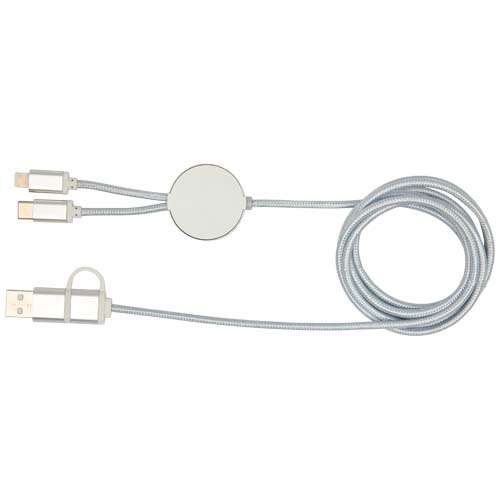 Das Alasia 27 W 5-in-1 Daten- und Schnellladekabel besteht aus dünnem, langlebigem recyceltem Aluminium und recyceltem Kunststoff. Das Kabel verfügt über einen USB-A- und einen Typ-C-Eingang sowie einen kombinierten Typ-C- und Lightning/Micro-USB-Ausgang. USB-A zu USB-C liefert max. 27 W Ausgangsleistung, alle anderen Anschlüsse max. 15 W. Kompatibel mit CarPlay und Android Auto. Ob zu Hause, im Büro oder unterwegs, das Alasia Kabel bietet Leistung und Stil in einem kompakten Paket. Länge des Kabels: 150 cm.