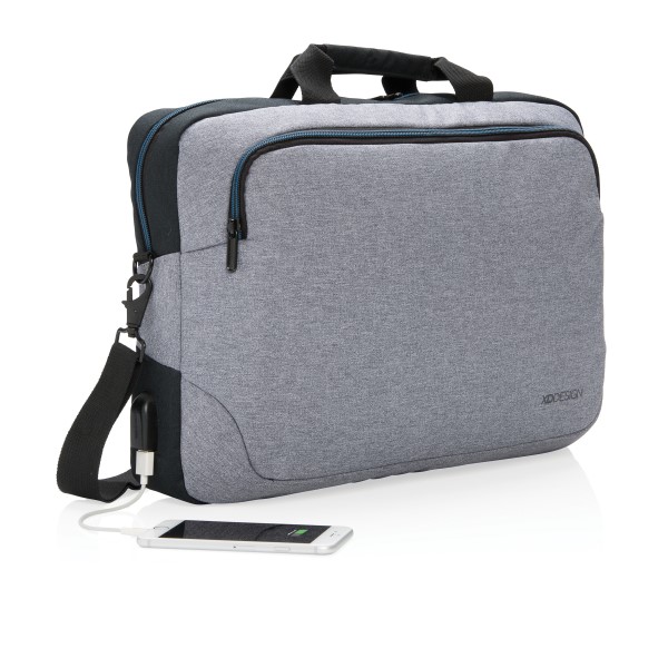 Einzigartig designte 15” Laptop-Tasche mit einem Hauptfach und einer Fronttasche. Verbinden Sie auch Ihre Powerbank über den integrierten USB-Port und laden Sie Ihr Smartphone “on-the-go”. Geschütztes Design®