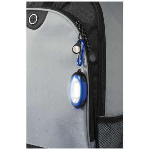 Atria Karabiner COB Licht. Ultra helles COB Licht mit Ein/Aus Schalter für dauerhaftes und blinkendes Licht. Mit Magnet auf der Rückseite, inkl. Batterien und farblich passendem Karabiner (nicht zum Klettern geeignet). ABS Kunststoff.