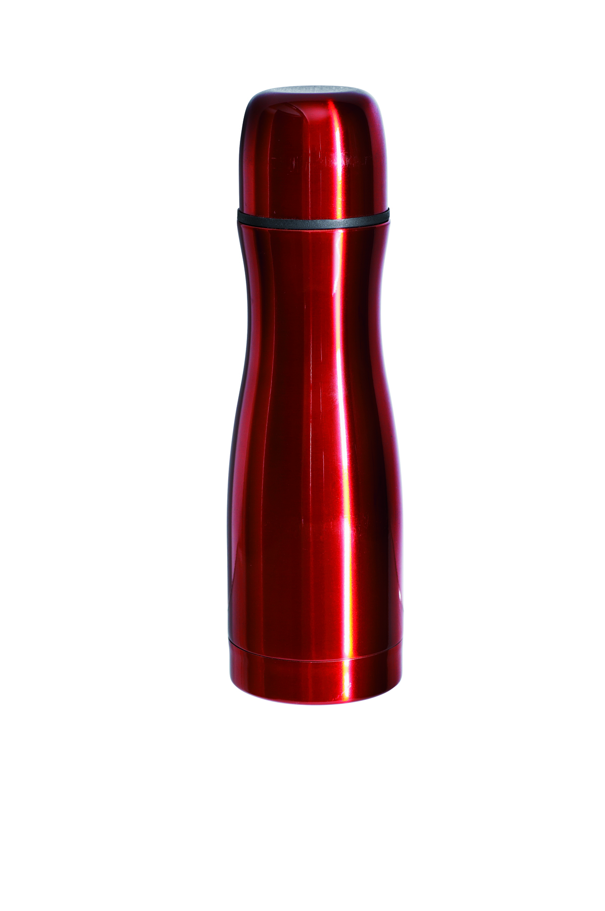 Vakuumisolierte Edelstahl-Thermoflasche mit Schraubverschluss/Trinkbecher und handlichem Schanksystem mit Druckverschluss. Auslaufsicher. Fassungsvermögen 500 ml. Wird einzeln in einem Kraftkarton geliefert.