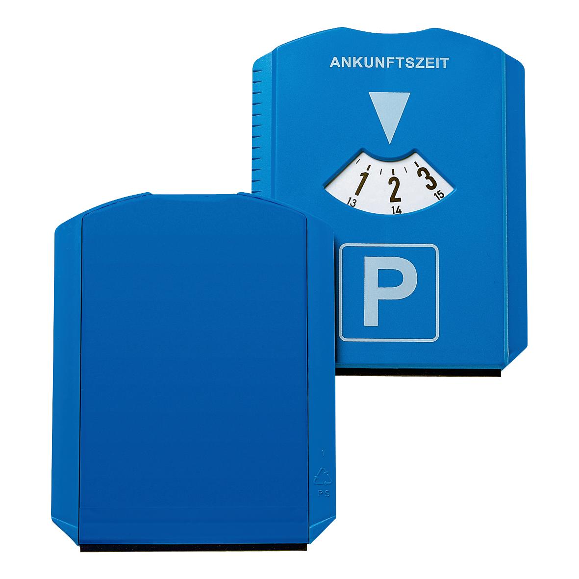 Parkscheibe mit Eiskratzer und Gummilippe. Durch diese clevere Kombination schlagen Sie gleich 2 Fliegen mit einer Klappe. Die Rückseite bietet eine hervorragende, bedruckbare Werbefläche.