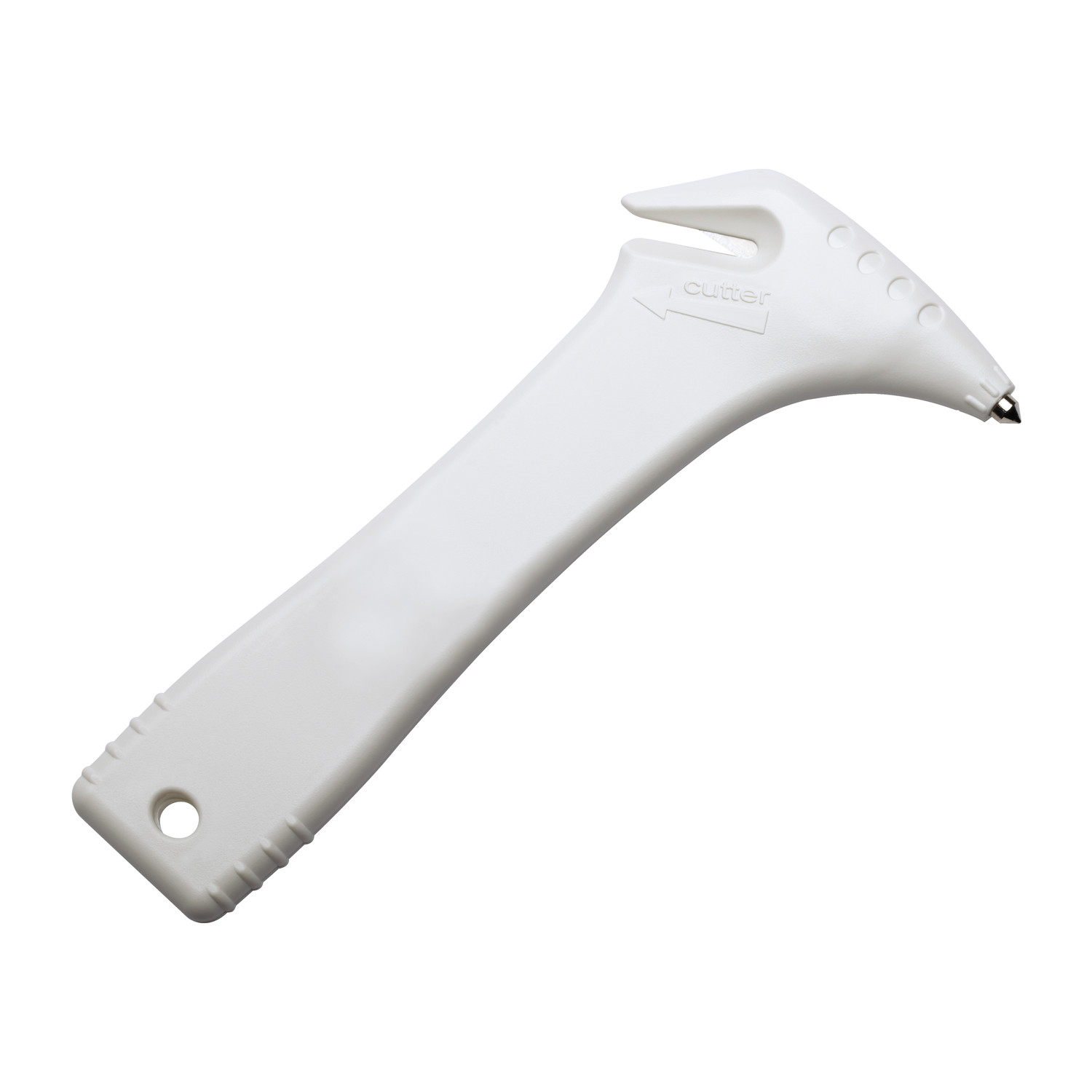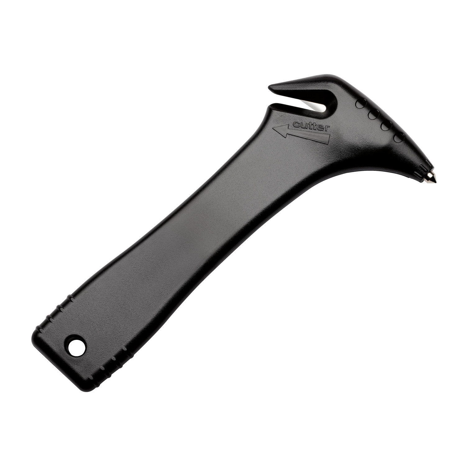 Notfallhammer mit Handschlaufe und integriertem Gurtschneider im Griff. Der Fensterhammer aus gehärtetem Stahl mit zwei Spitzen sowie der Gurtschneider können bei Unfällen verwendet werden.