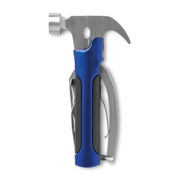 Multifunktionswerkzeug mit 9 Funktionen und Taschenlampe. 3 Lichteinstellungen und Zoom-Funktion. Notfallhammer und Gurtschneider. Exklusive 3 AAA Batterien. ABS mit gummiertem Finish.