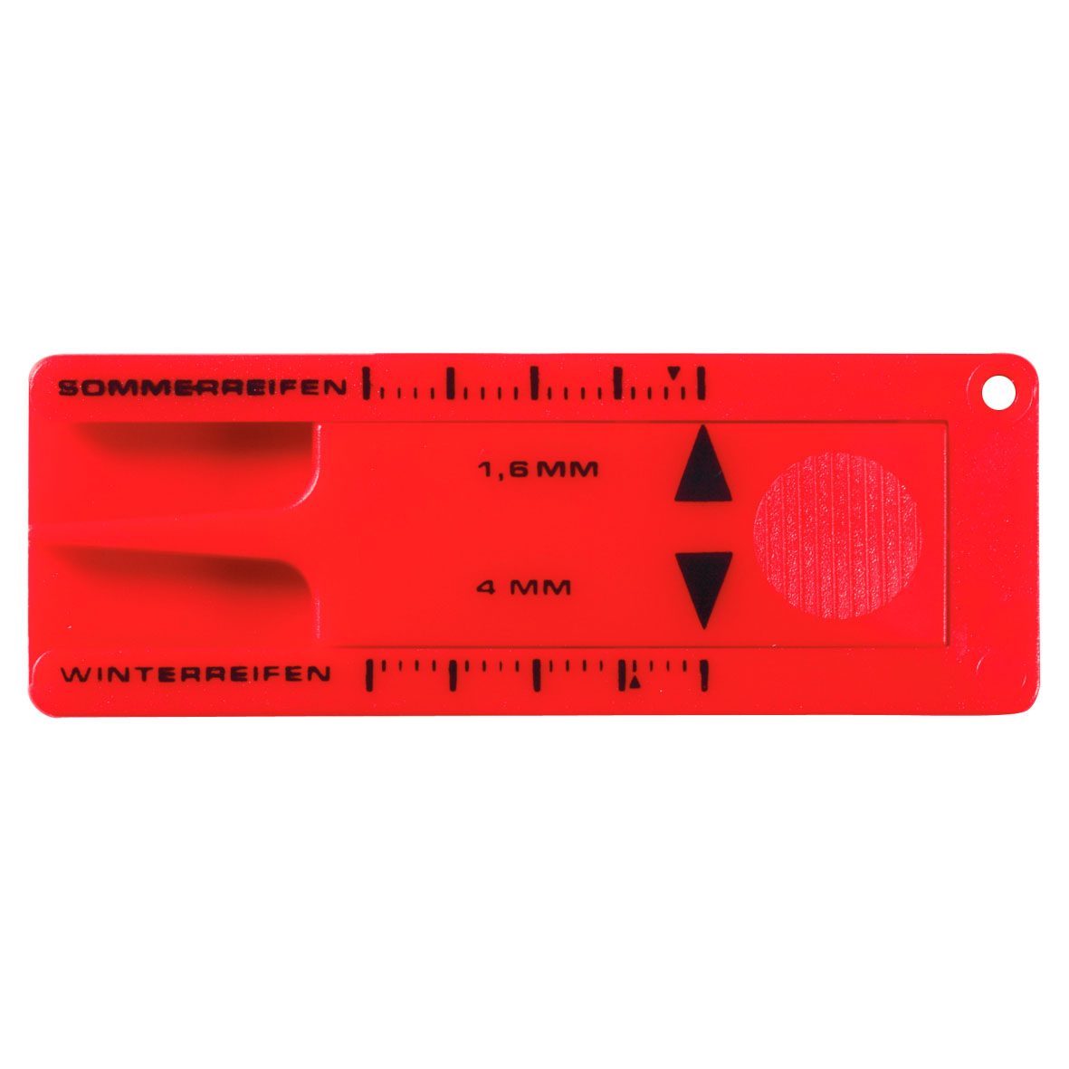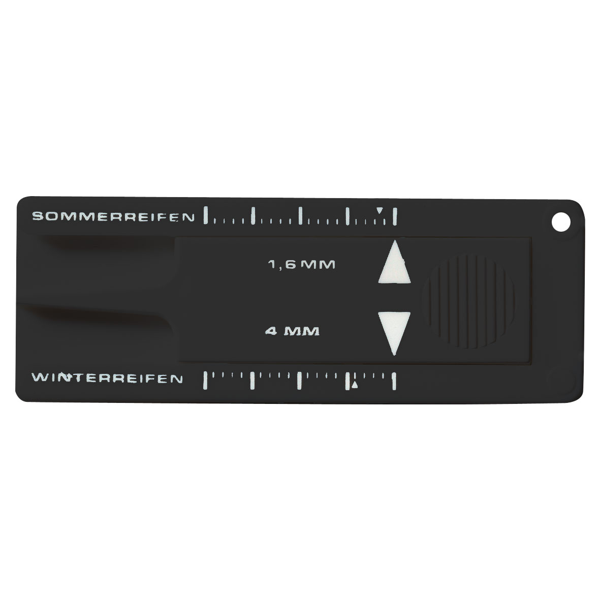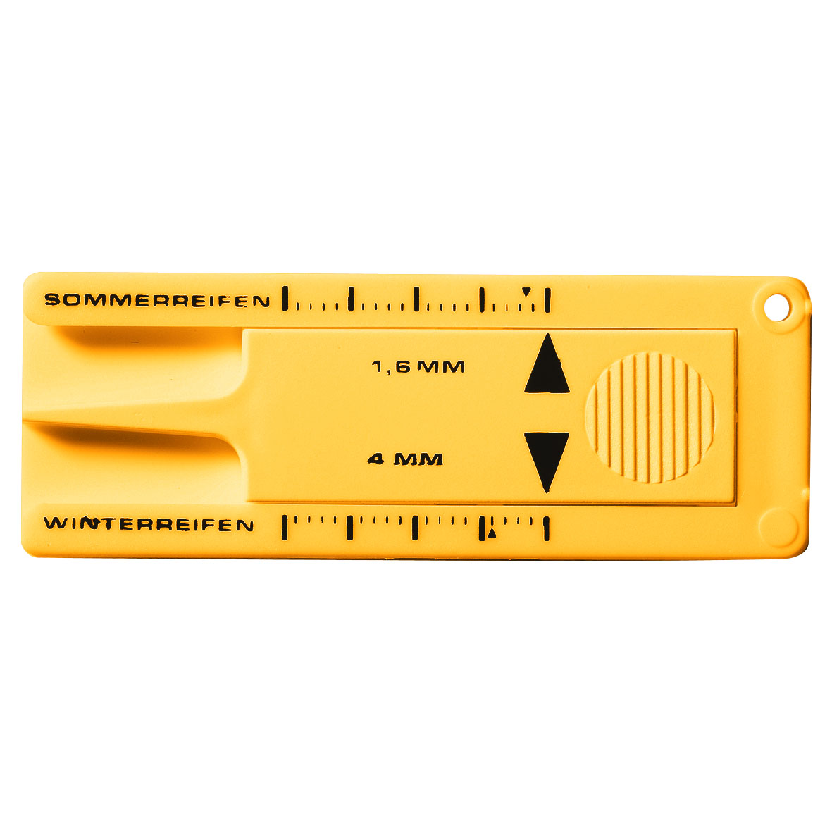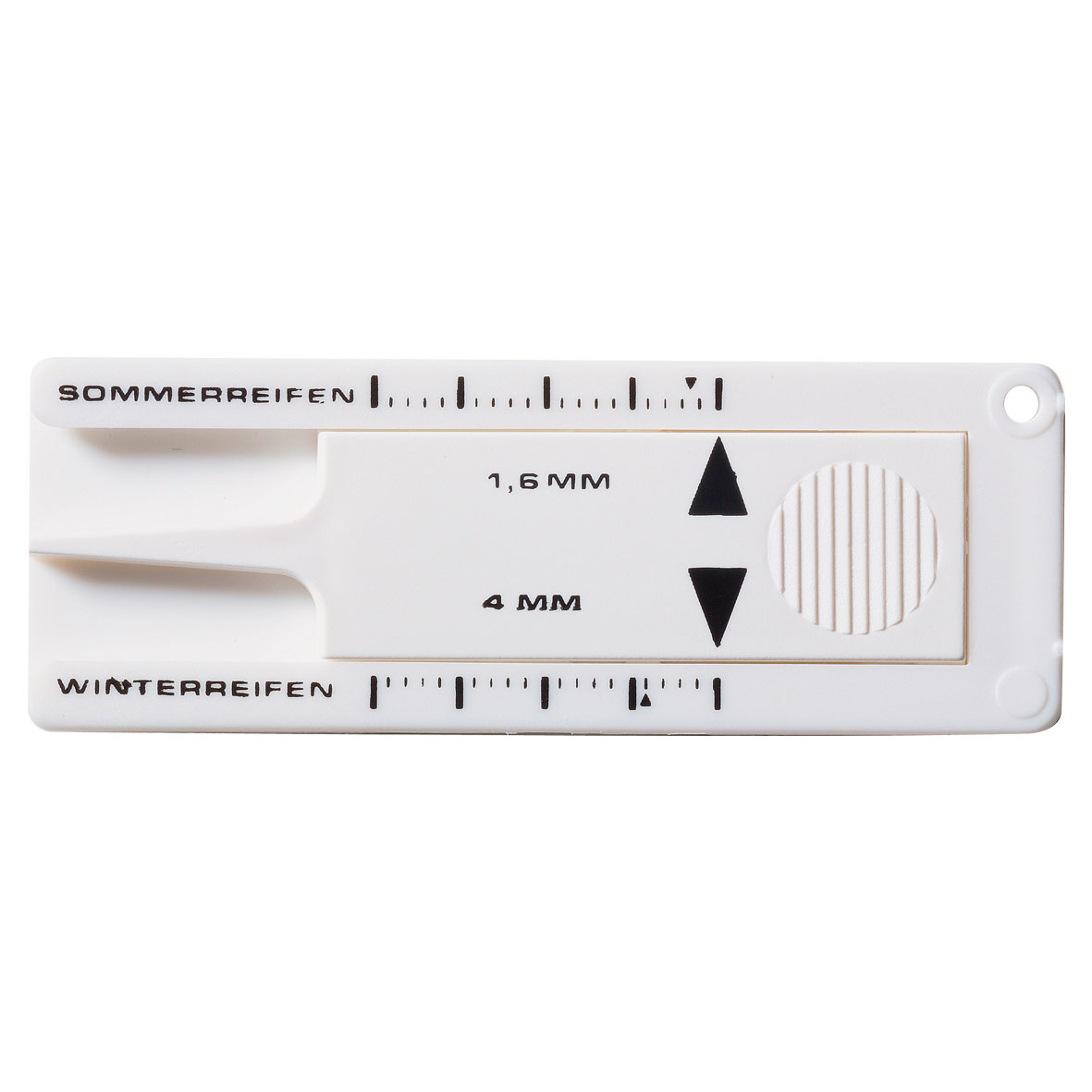 HORST zeigt im Nu’, ob die Profiltiefe noch stimmt. Der Reifenprofi misst jeweils mit einer Hand die empfohlenen Richtwerte - für Sommerreifen 3mm, für Wintereifen 4mm. Der kleine Schaber an den Füßen entfernt zuverlässig alte Vignetten von der Frontscheibe. Auch als Schlüsselanhänger erhältlich.