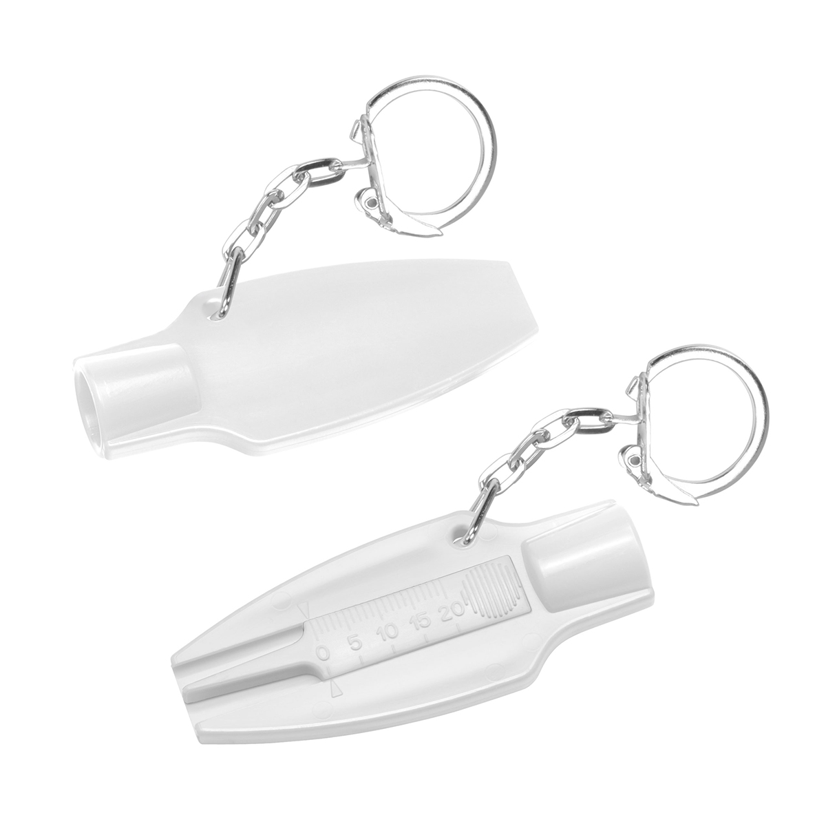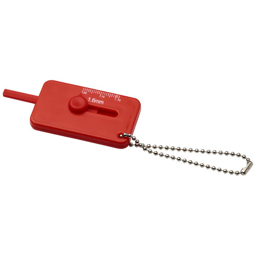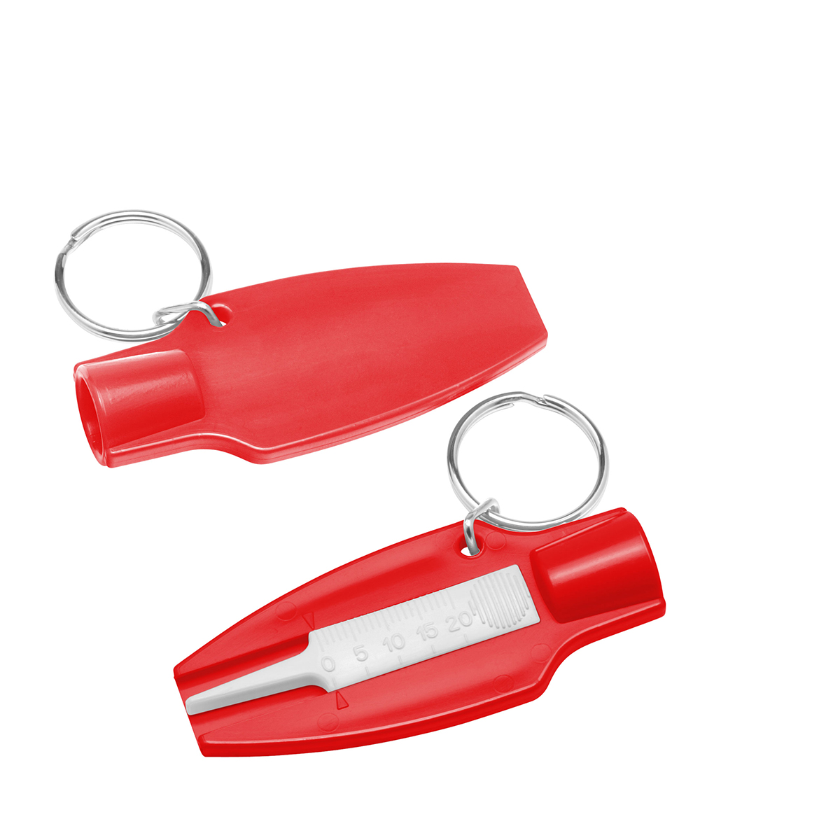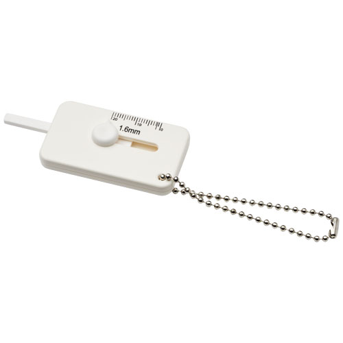 Kepi Schlüsselanhänger mit Reifenprofilmesser. Schlüsselanhänger in Form eines Reifenprofilmessers mit metallenem Schlüsselring. Ideal für Auto- oder in der Werkstatteinrichtungen. PS-Kunststoff.