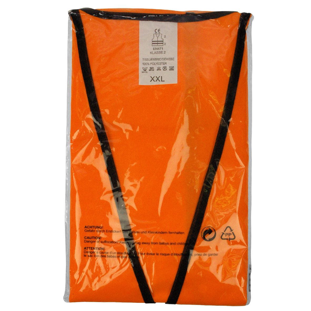 Warnweste mit stark reflektierenden Reflektionsstreifen zum optimalen Schutz bei Dunkelheit. Einheitsgröße XXL. Standardmäßig im Polybeutel erhältlich. Entspricht den Anforderungen der EU-VO 2016/425, Klasse II und der Norm EN ISO 20471:2013+A1:2016. Im Siebdruck nur in schwarz, silber oder silber reflektierend veredelbar. Aus 100 % Polyester.