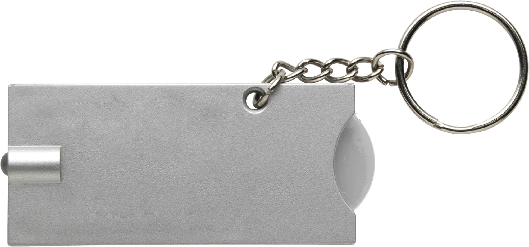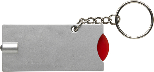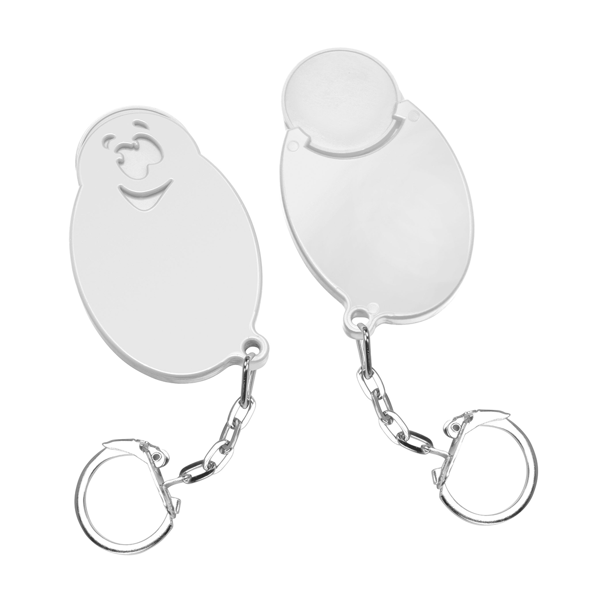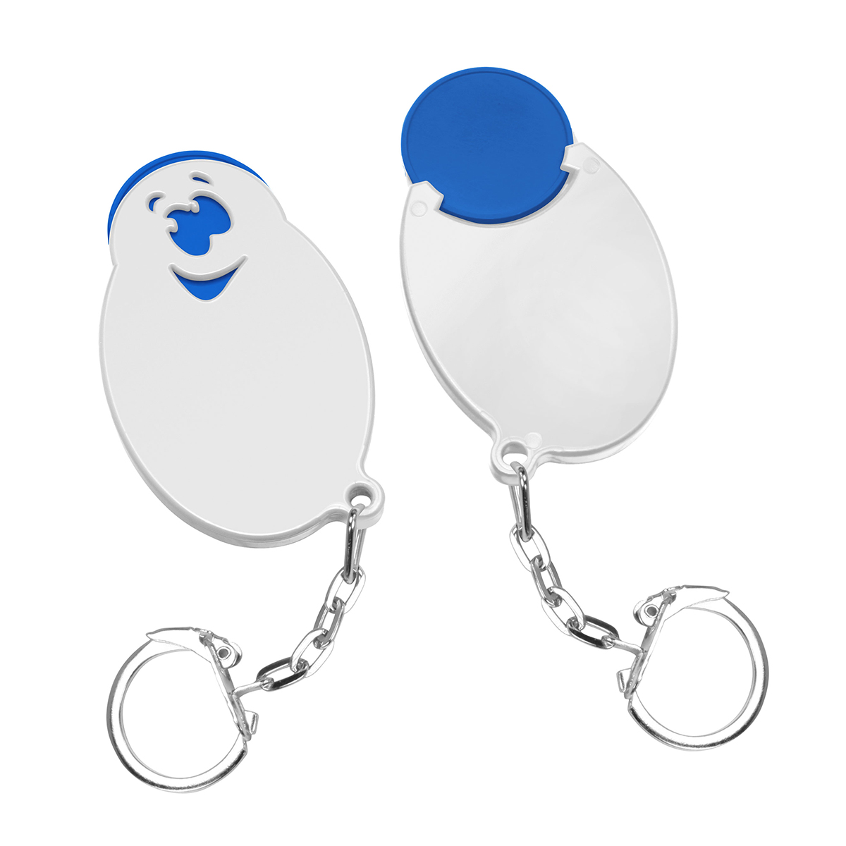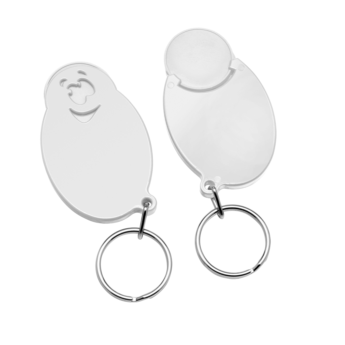 Schlüsselanhänger aus Kunststoff, mit Einkaufswagenchip aus Kunststoff, LED-Lampe (weiß) und Metall-Schlüsselkette.