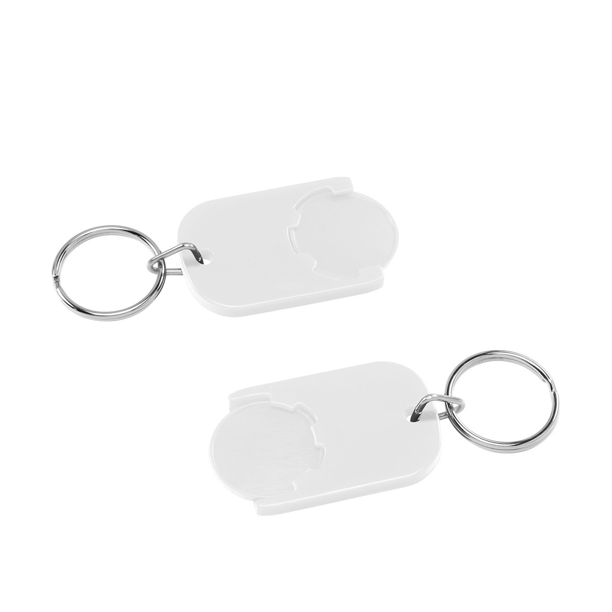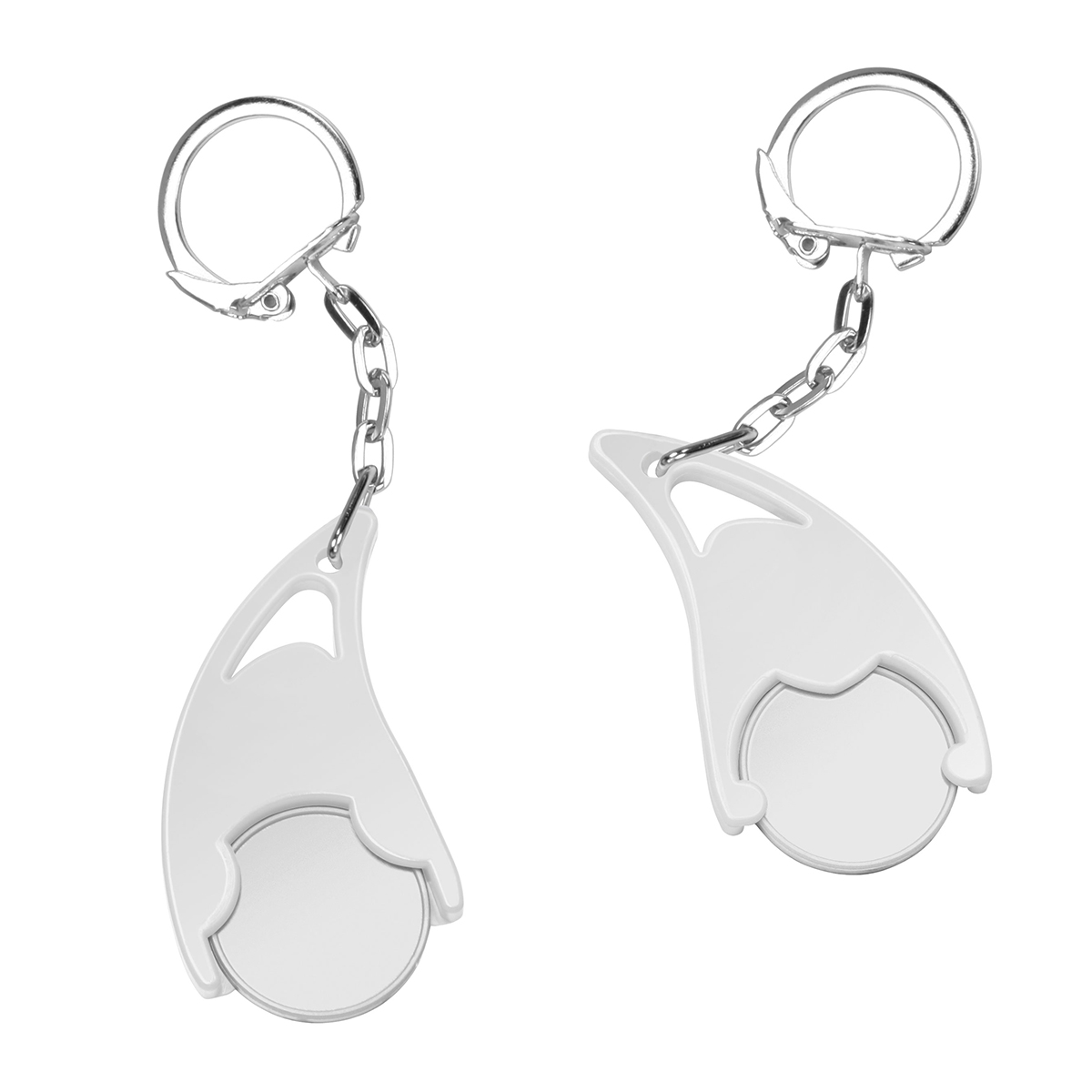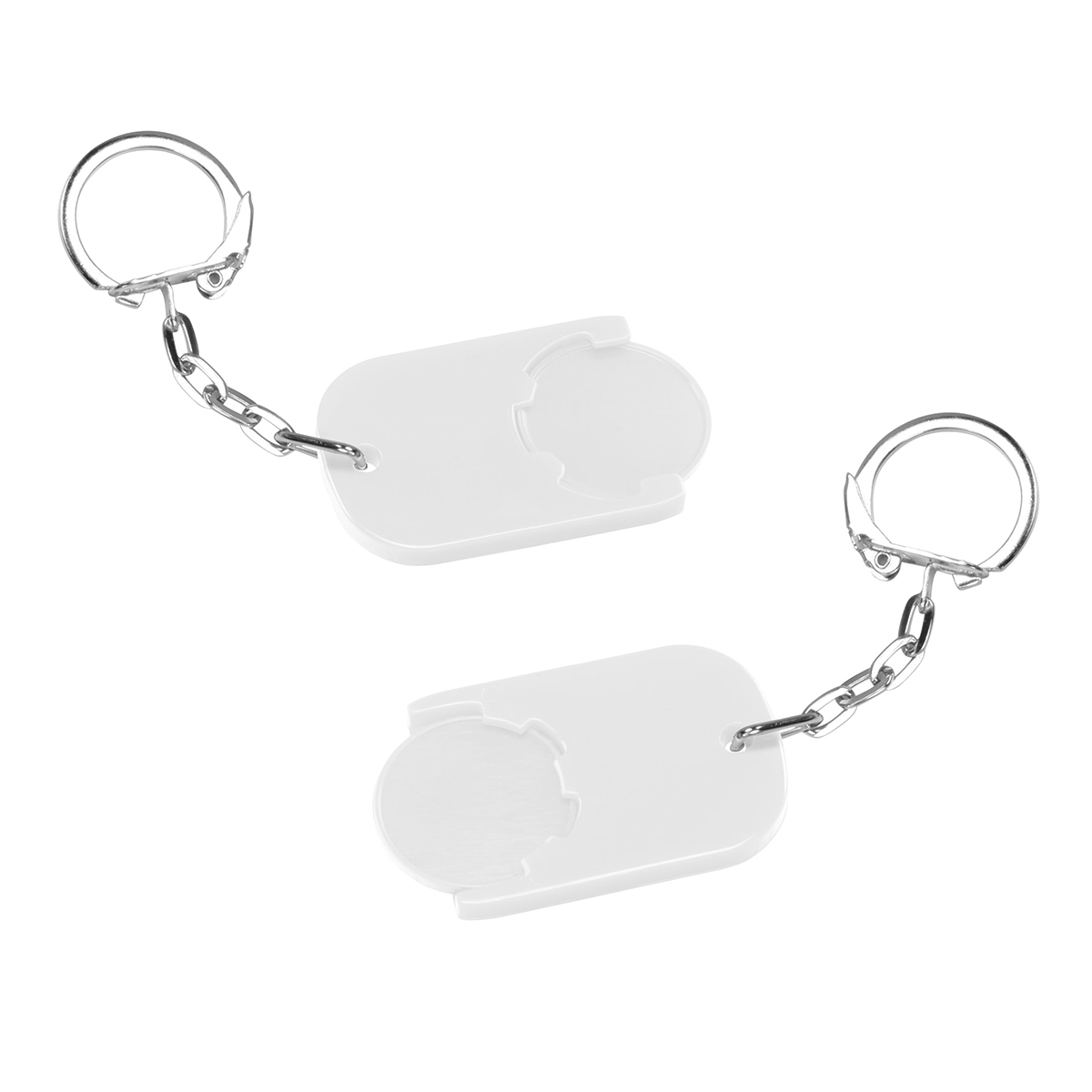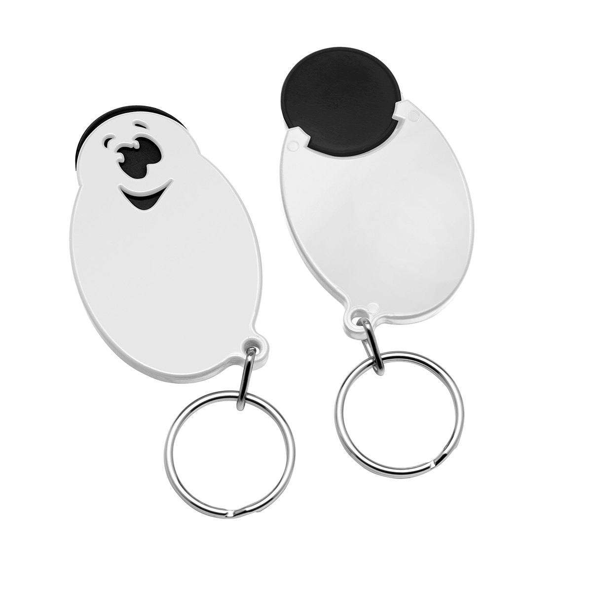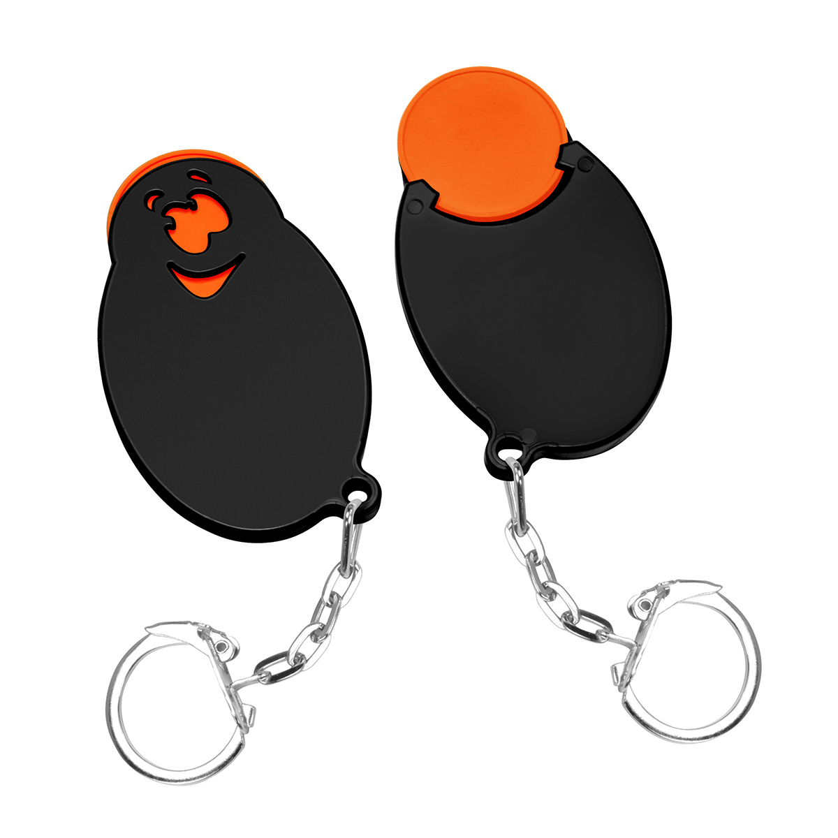 Schlüsselanhänger aus Kunststoff, mit Einkaufswagenchip aus Kunststoff, LED-Lampe (weiß) und Metall-Schlüsselkette.