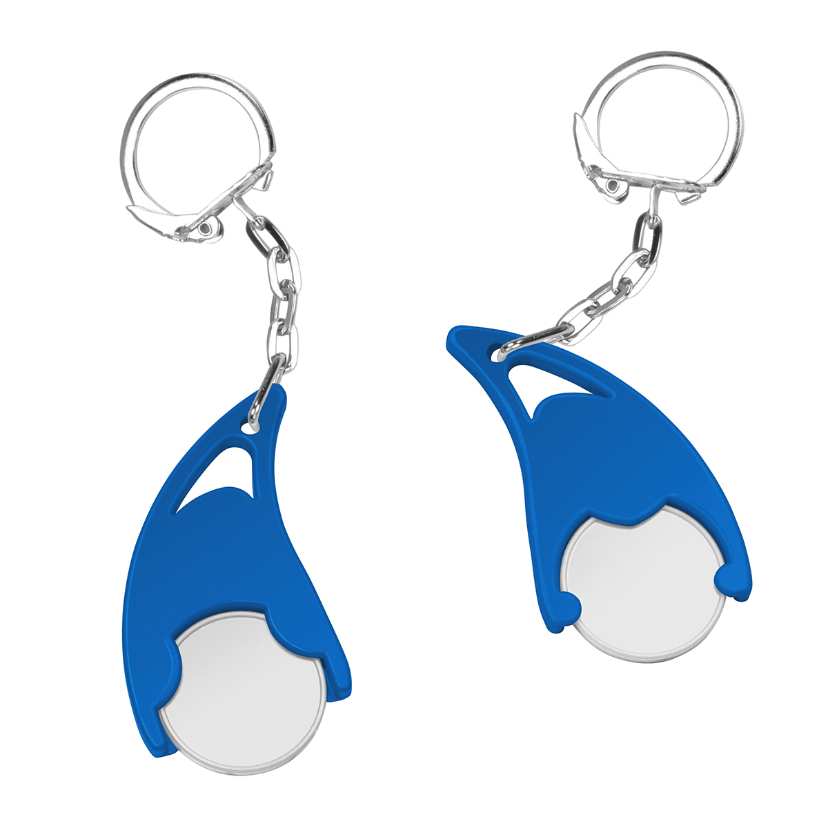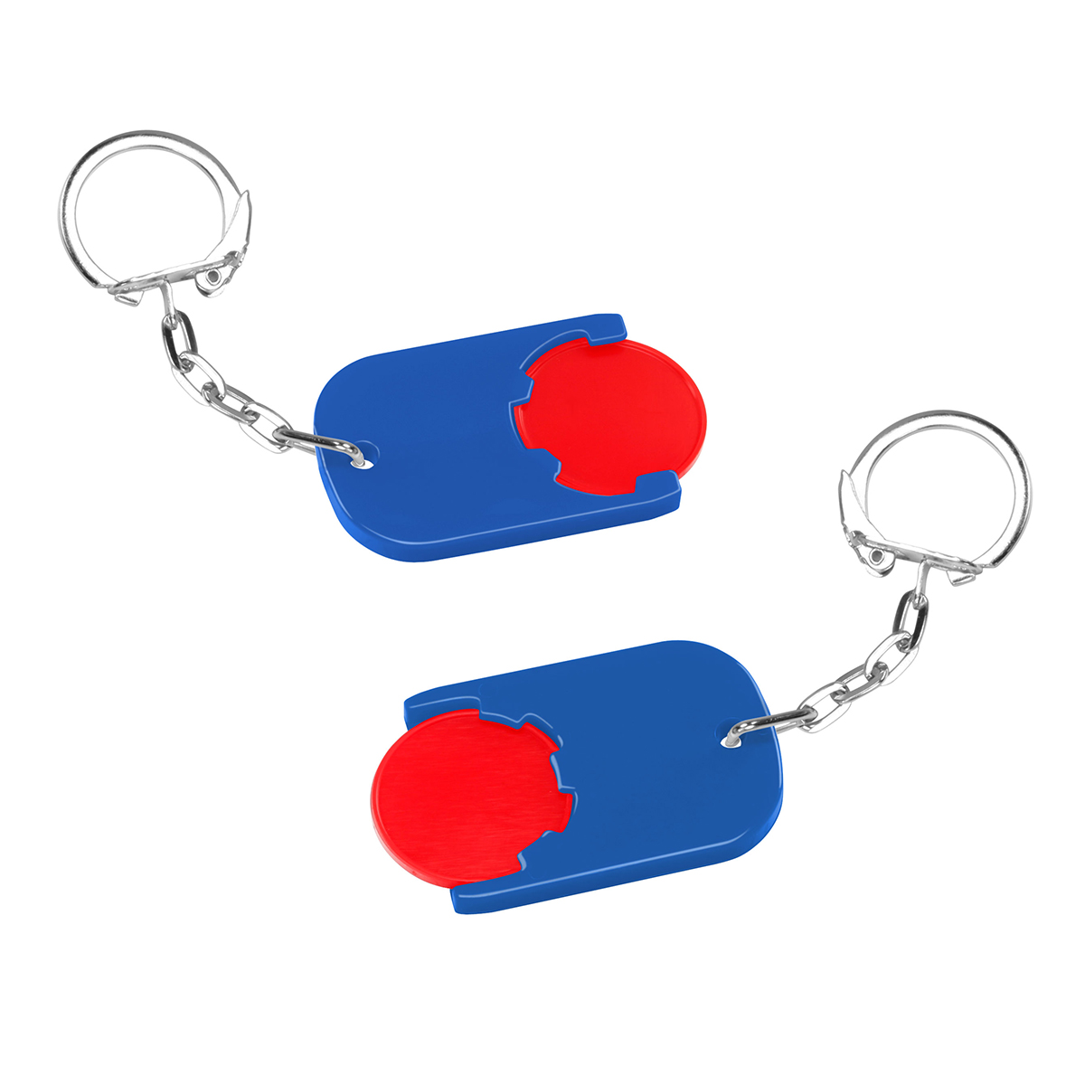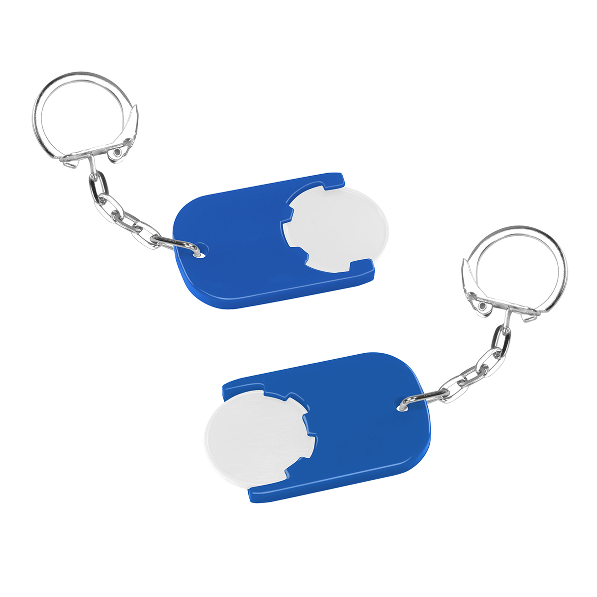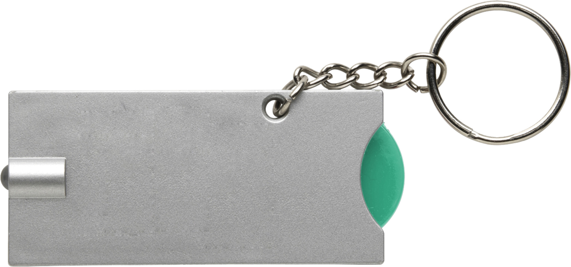 Schlüsselanhänger aus Kunststoff, mit Einkaufswagenchip aus Kunststoff, LED-Lampe (weiß) und Metall-Schlüsselkette.