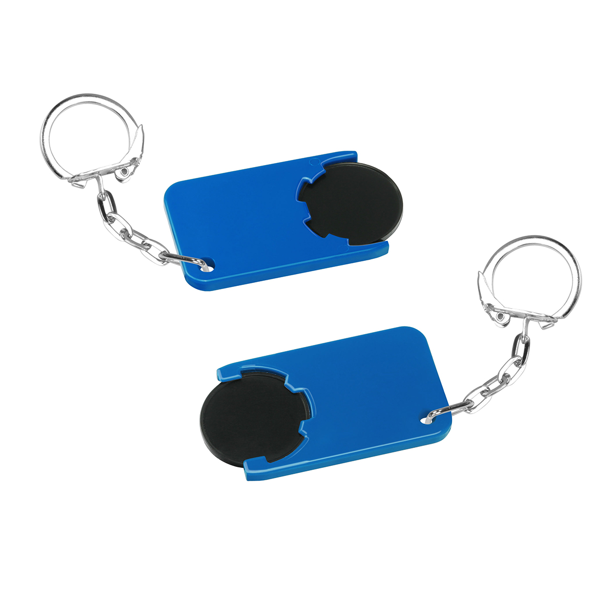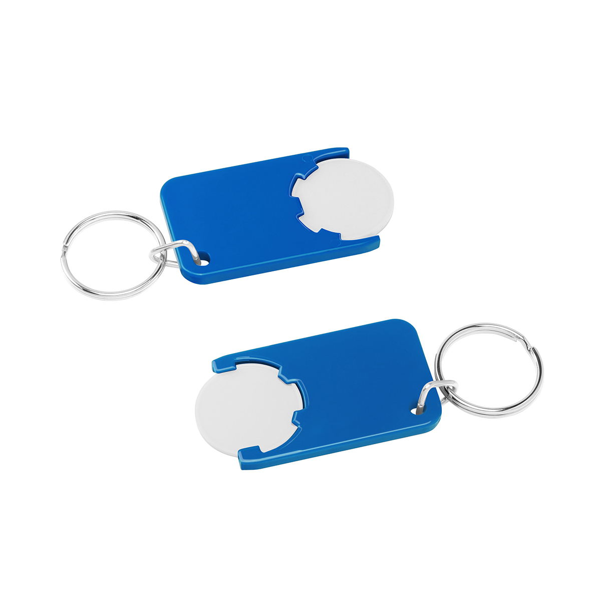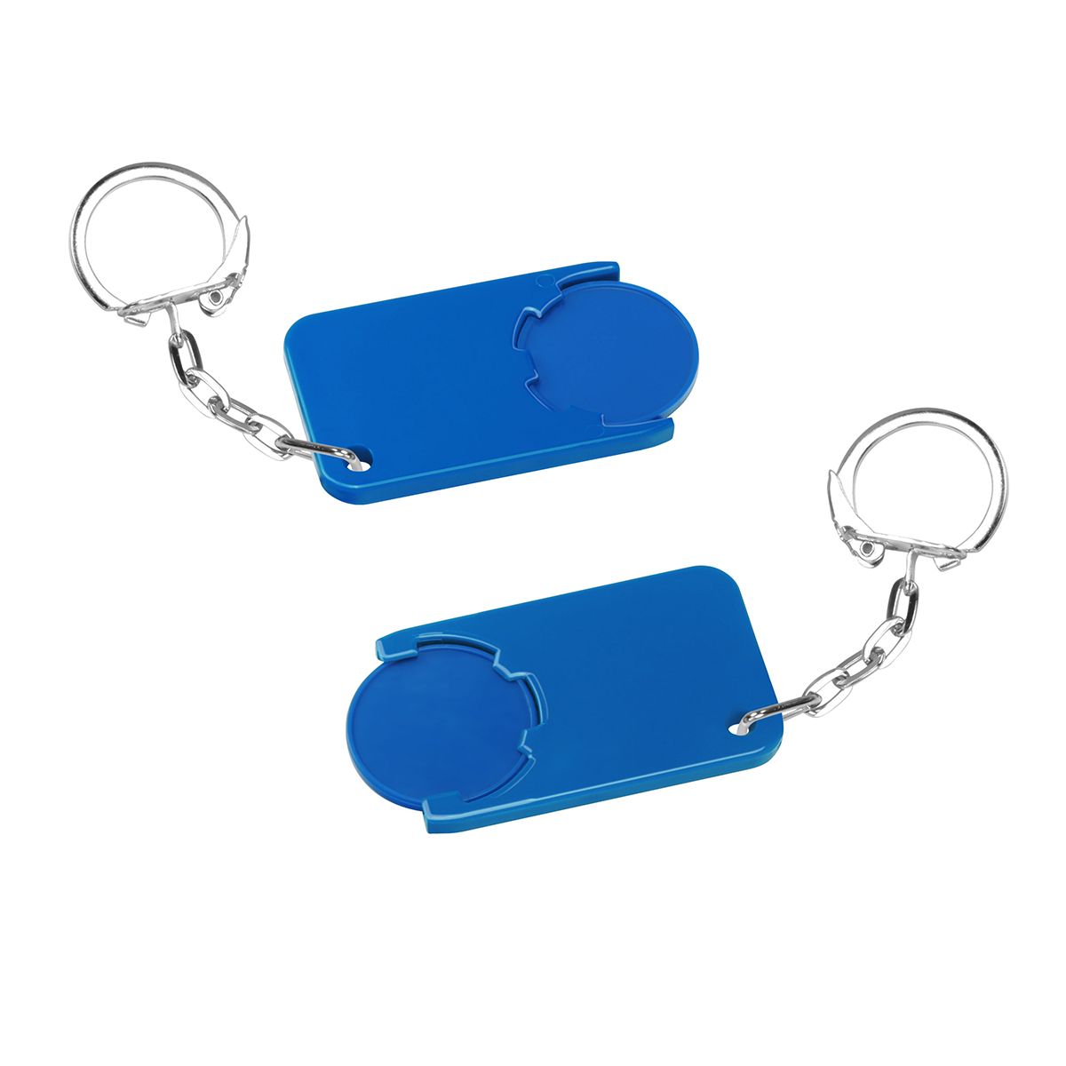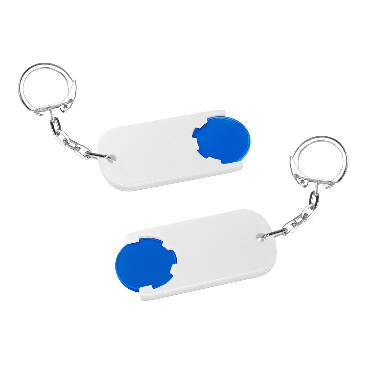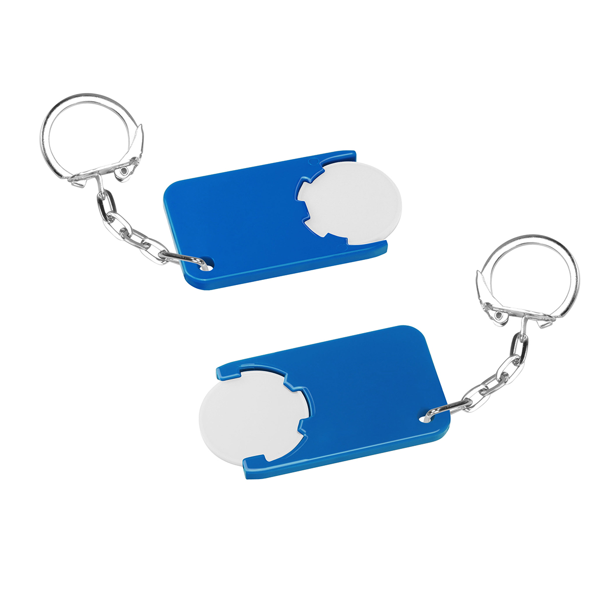 Schlüsselanhänger aus Kunststoff, mit Einkaufswagenchip aus Kunststoff, LED-Lampe (weiß) und Metall-Schlüsselkette.