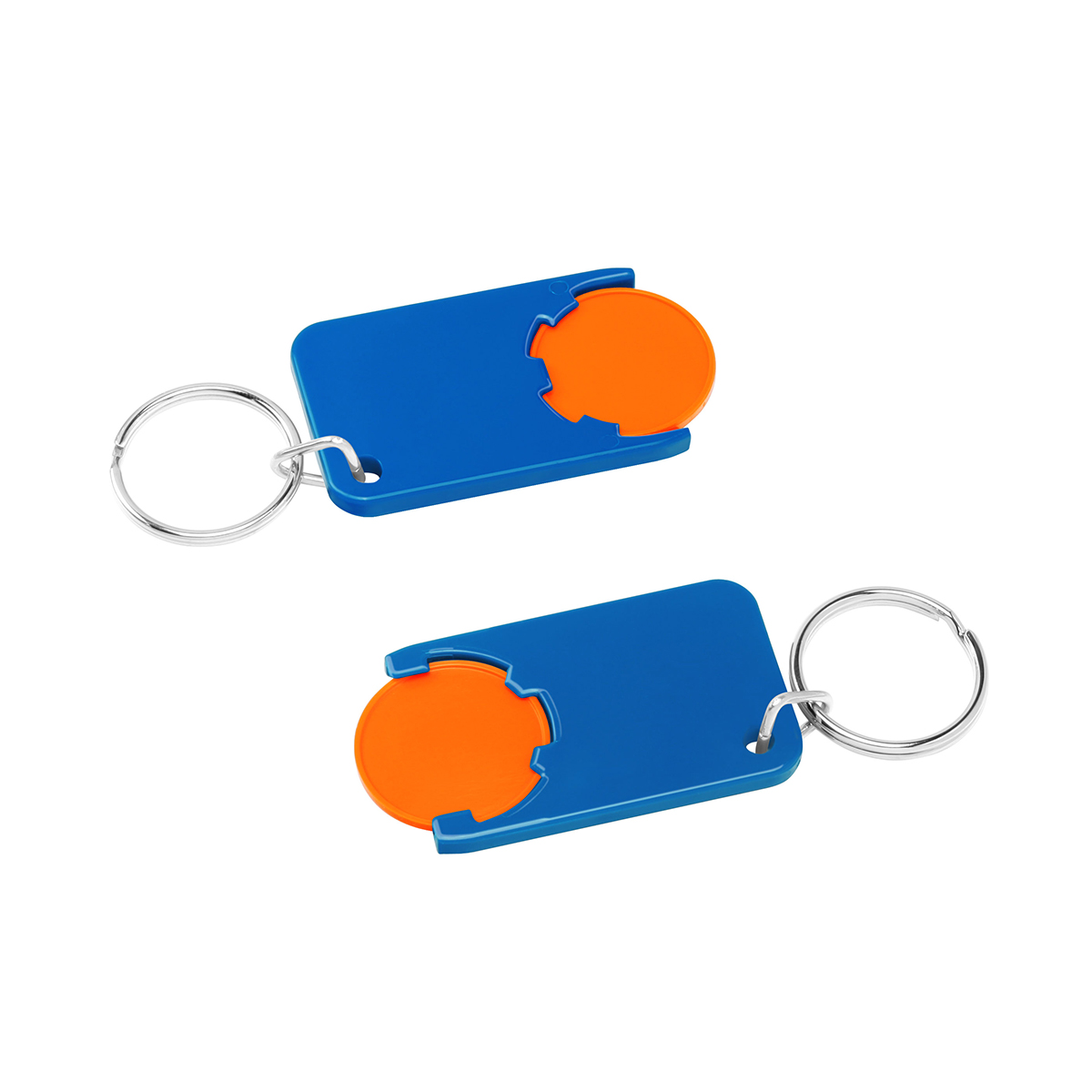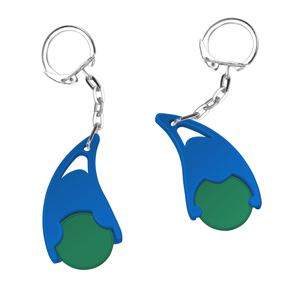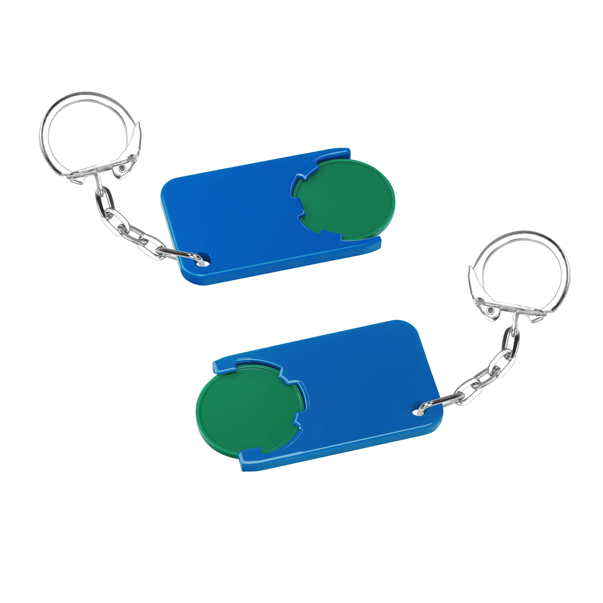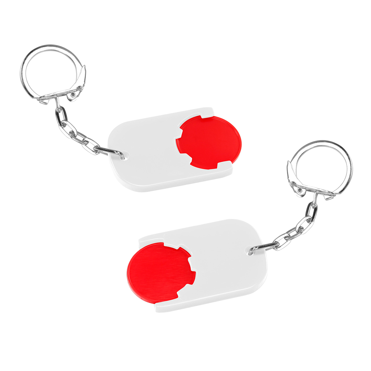 Schlüsselanhänger aus Kunststoff, mit Einkaufswagenchip aus Kunststoff, LED-Lampe (weiß) und Metall-Schlüsselkette.