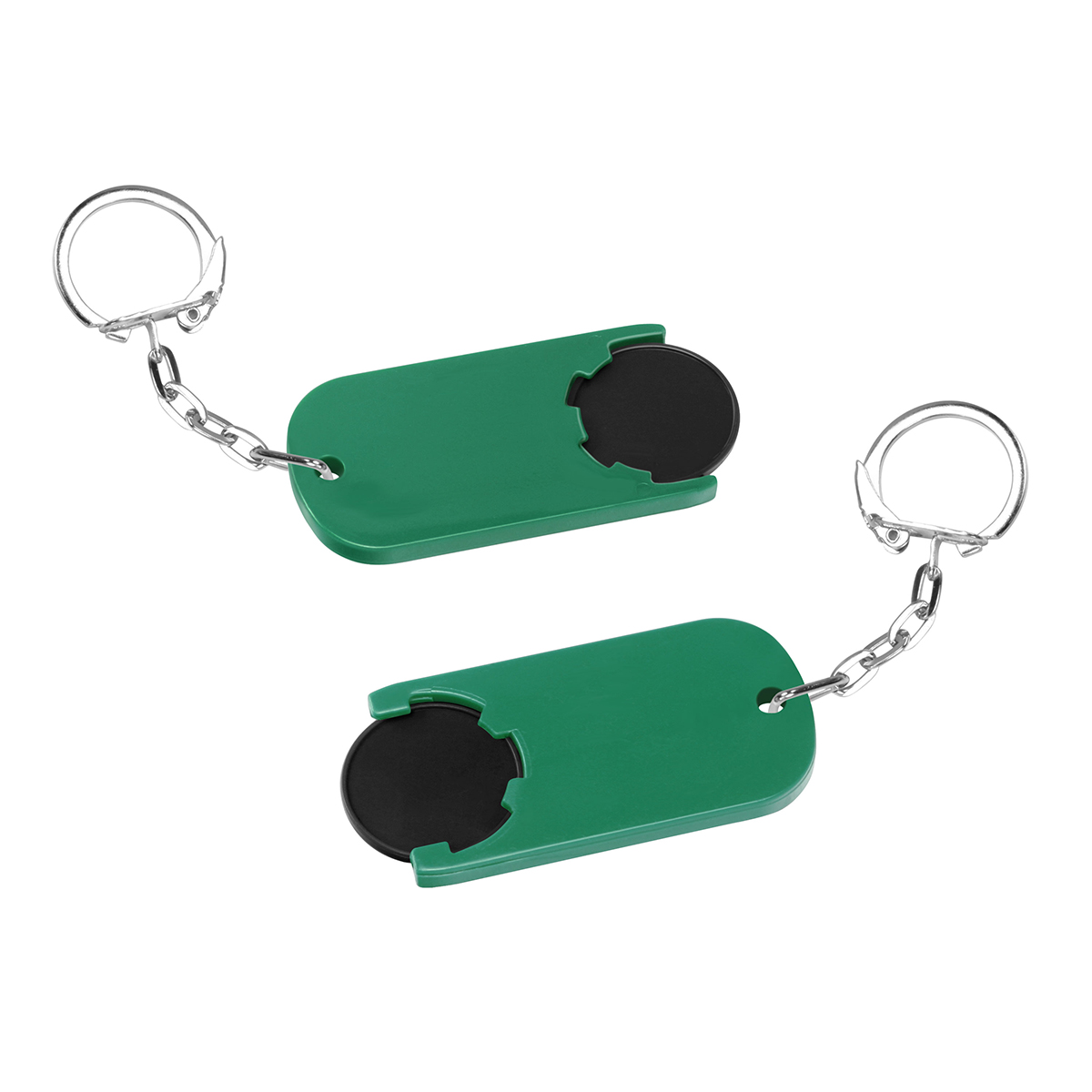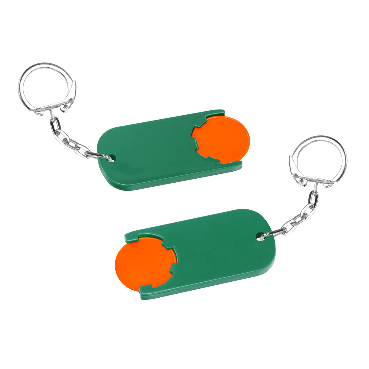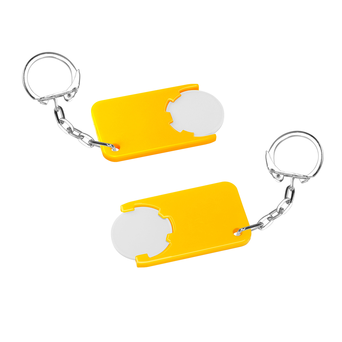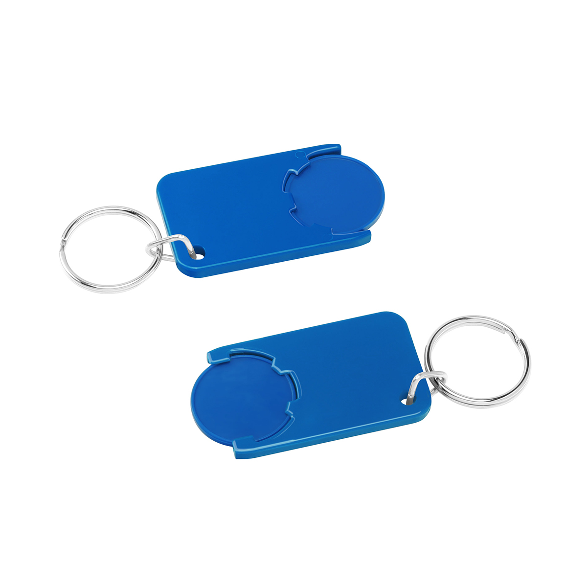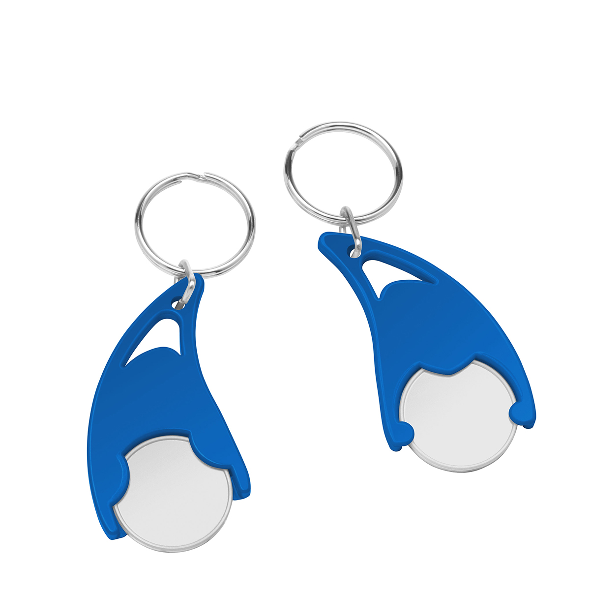 Schlüsselanhänger aus Kunststoff, mit Einkaufswagenchip aus Kunststoff, LED-Lampe (weiß) und Metall-Schlüsselkette.