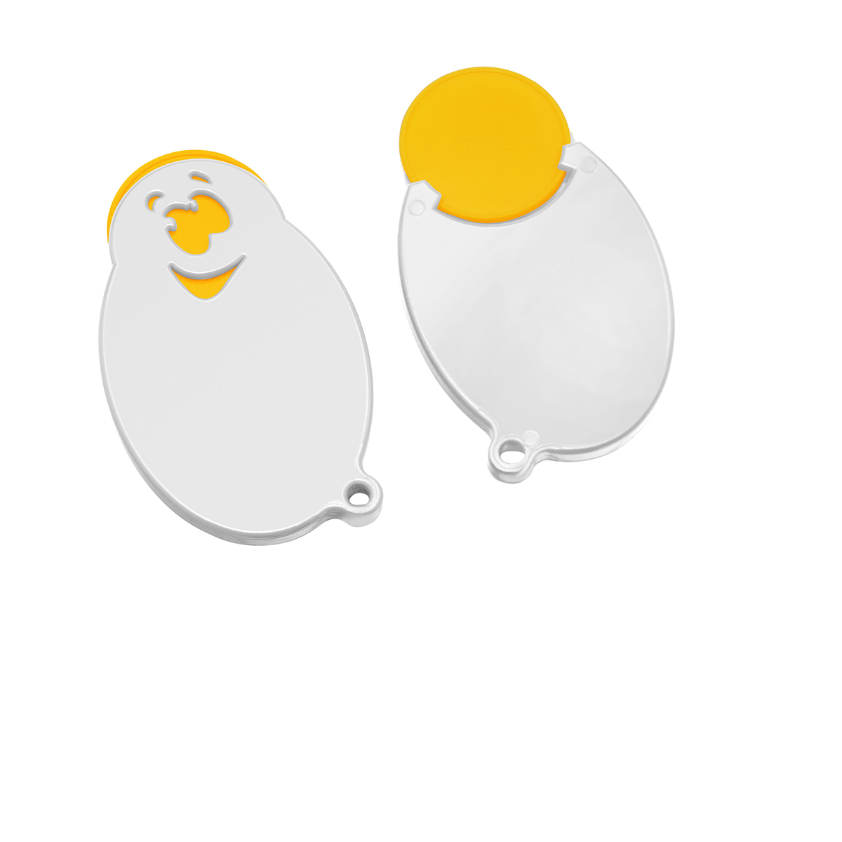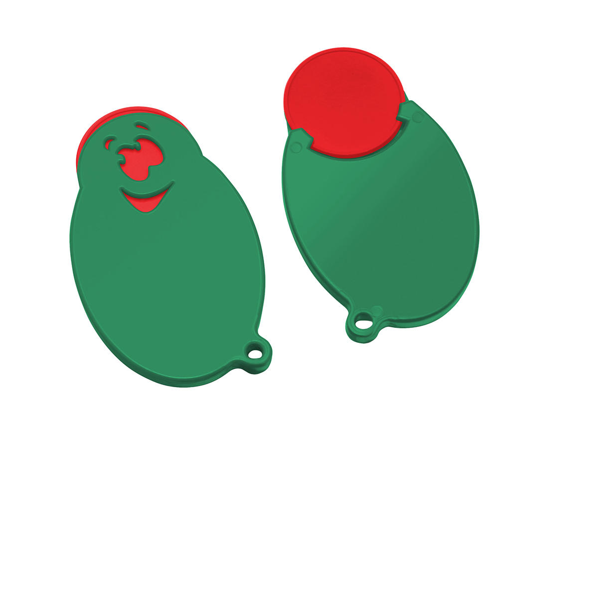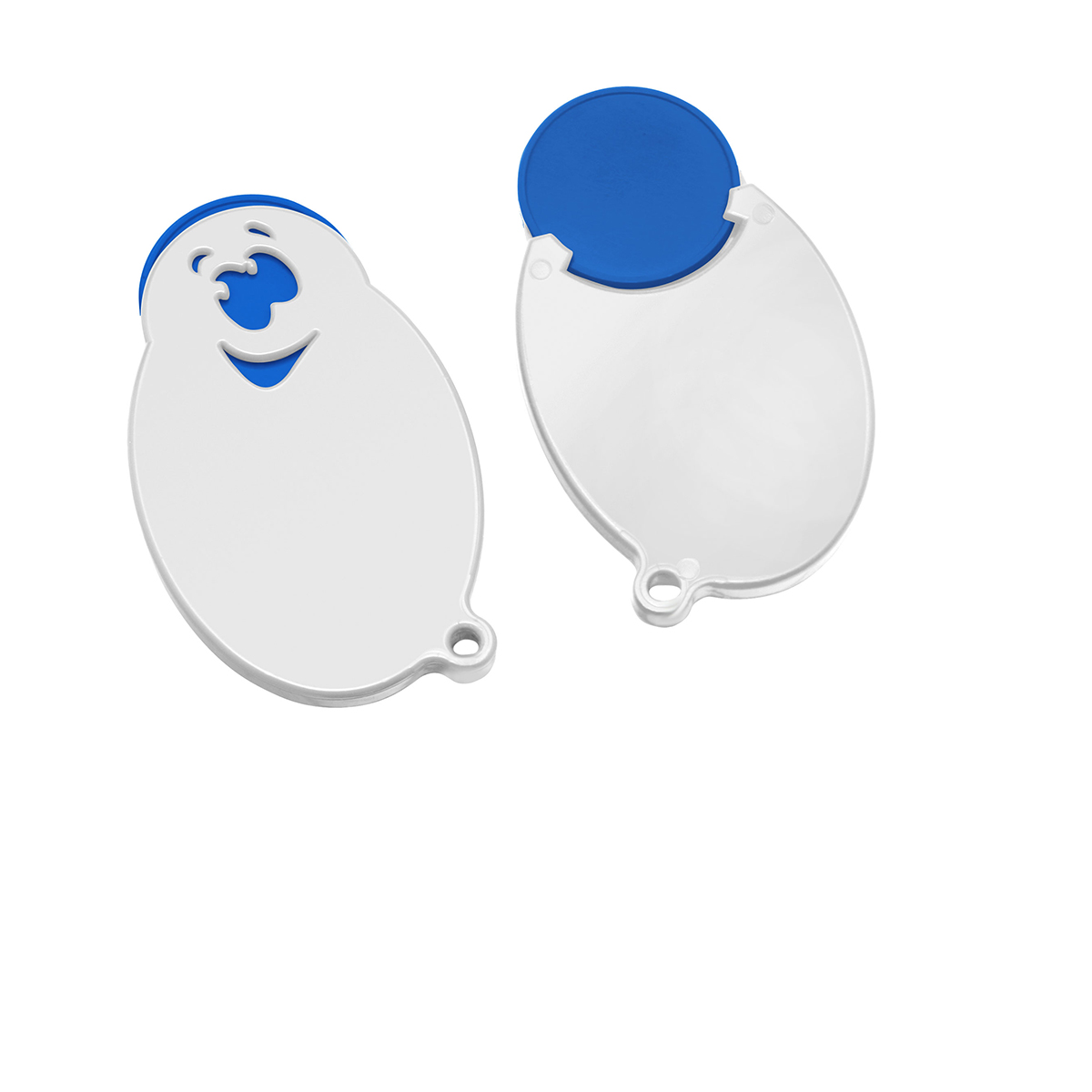 Chiphalter mit 1€-Chip "Gesicht", ohne Gliederkette, ohne Schlüsselring. Farbkombinationen möglich. Druckkosten pro Position.