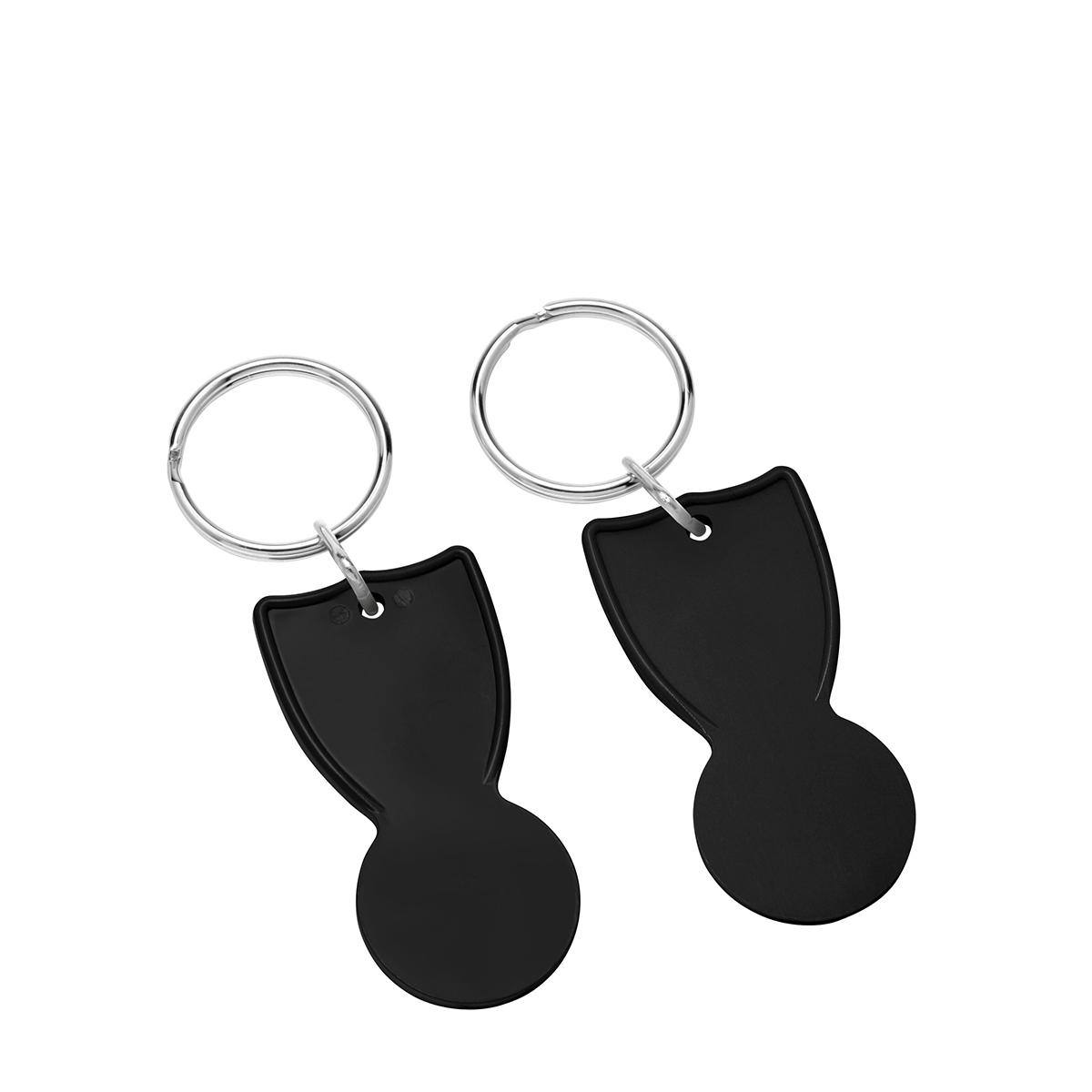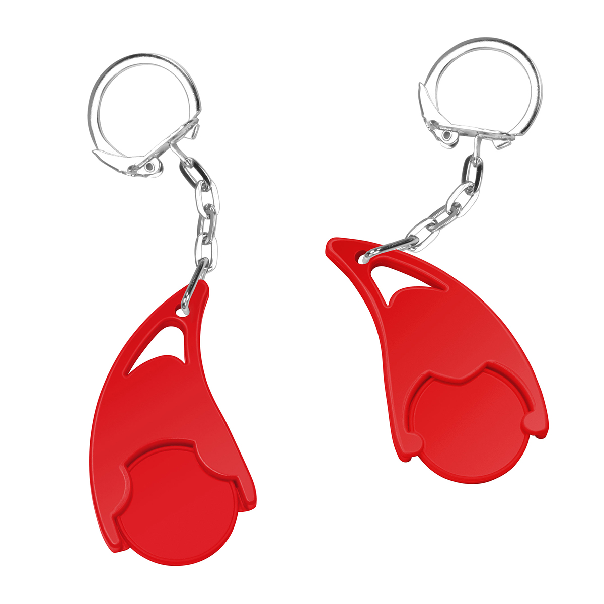 Einkaufswagenlöser, nach Auslösen des Einkaufwagens herausziehbar, mit Schlüsselring.