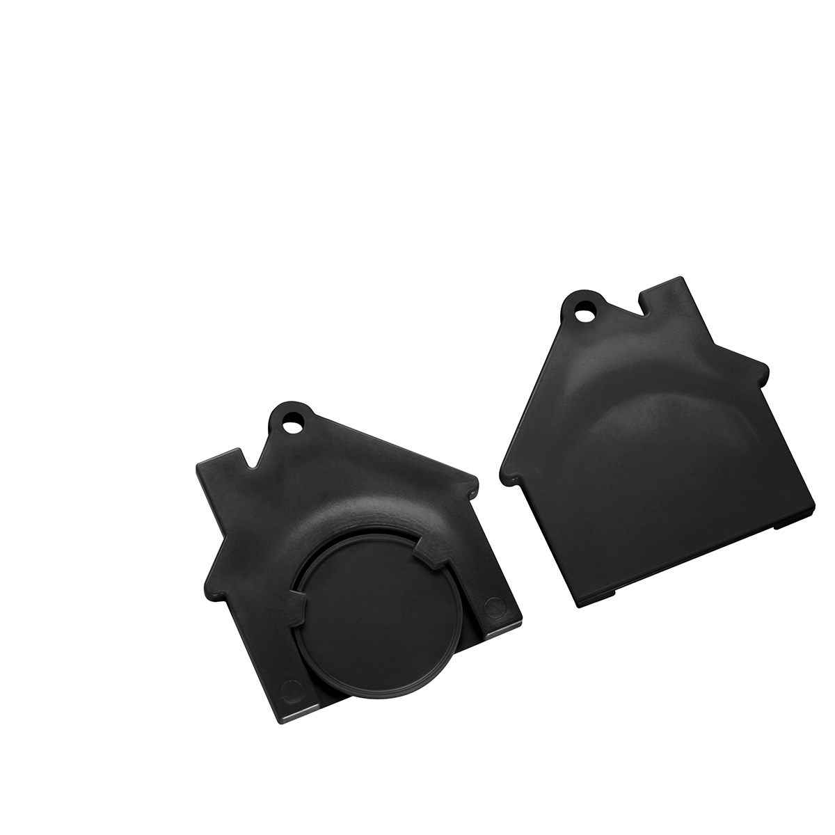 Chiphalter mit 1€-Chip "Haus", ohne Gliederkette, ohne Schlüsselring. Farbkombinationen möglich. Druckkosten pro Position.