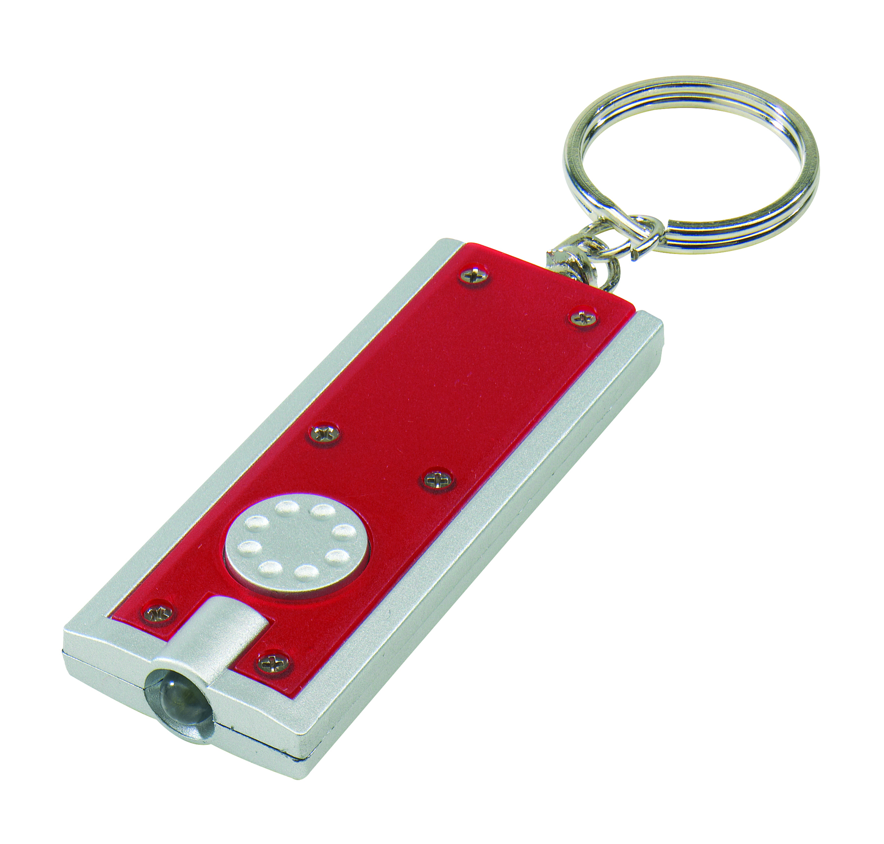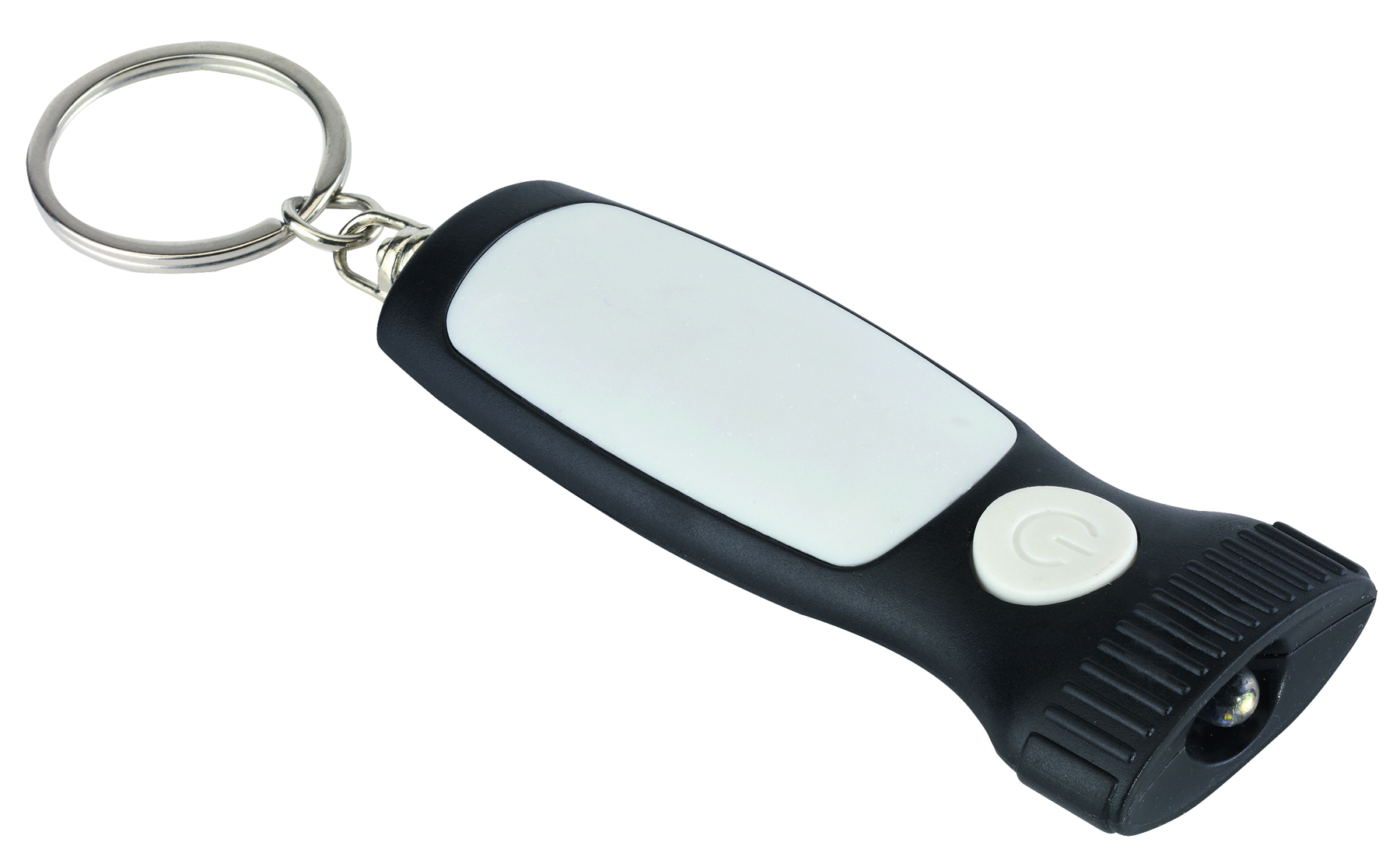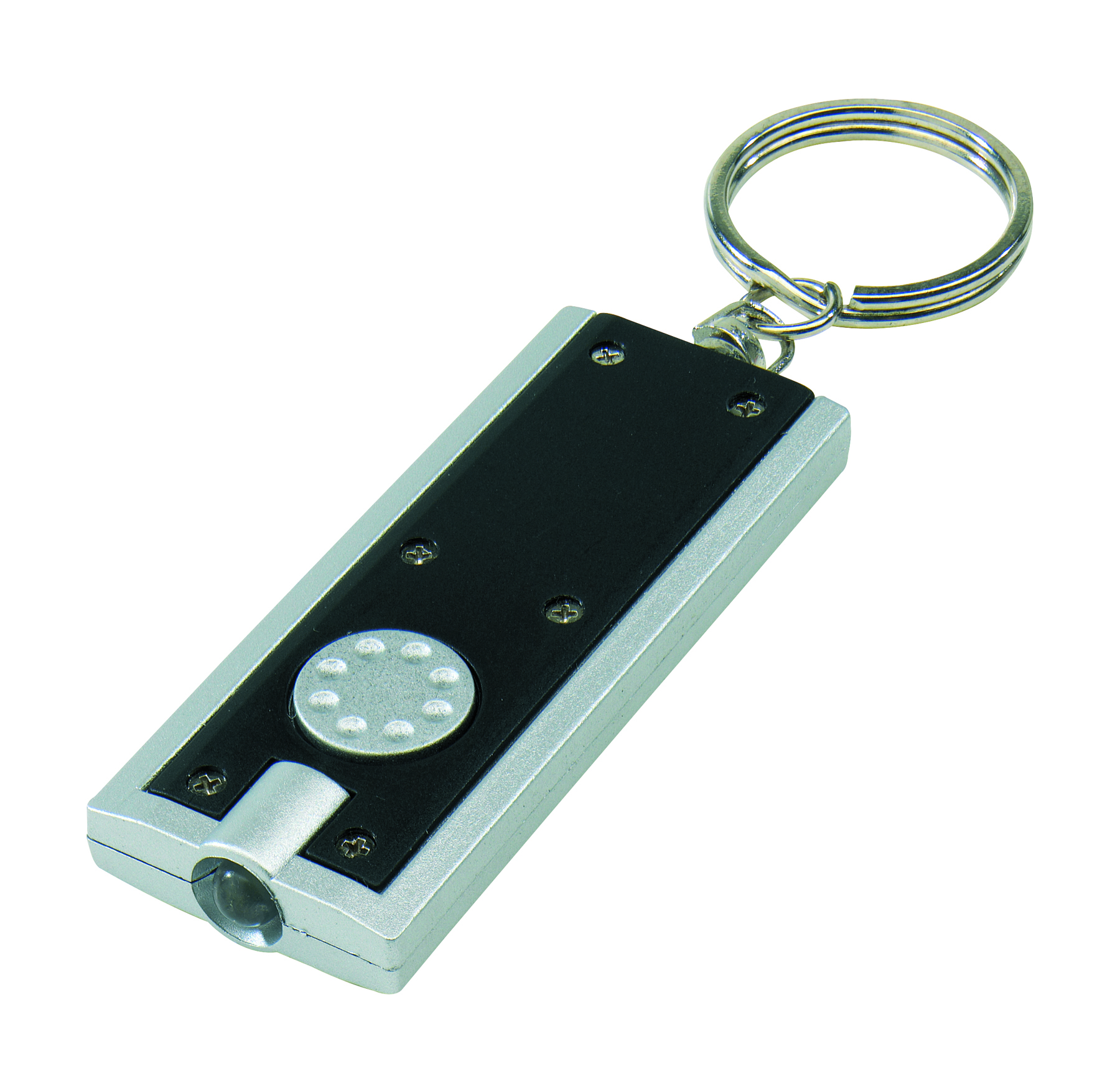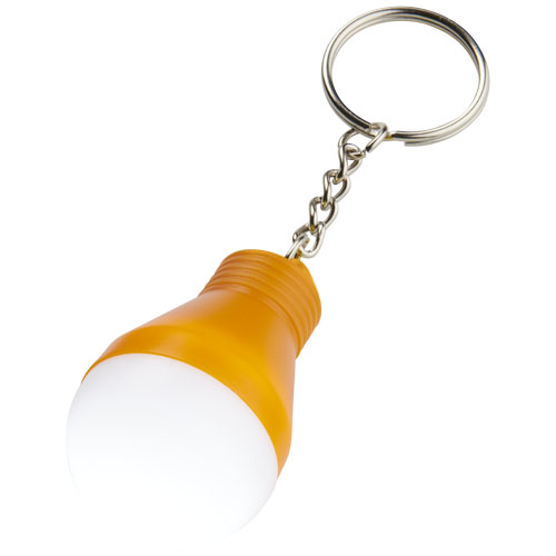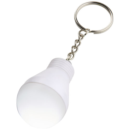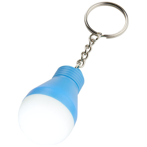 Aquila LED-Schlüssellicht. Einzelnes weißes LED-Schlüssellicht in der Form einer Glühbirne. Metall-Schlüsselring mit einem Durchmesser von 25 mm. Mit Batterien. ABS-Kunststoff.