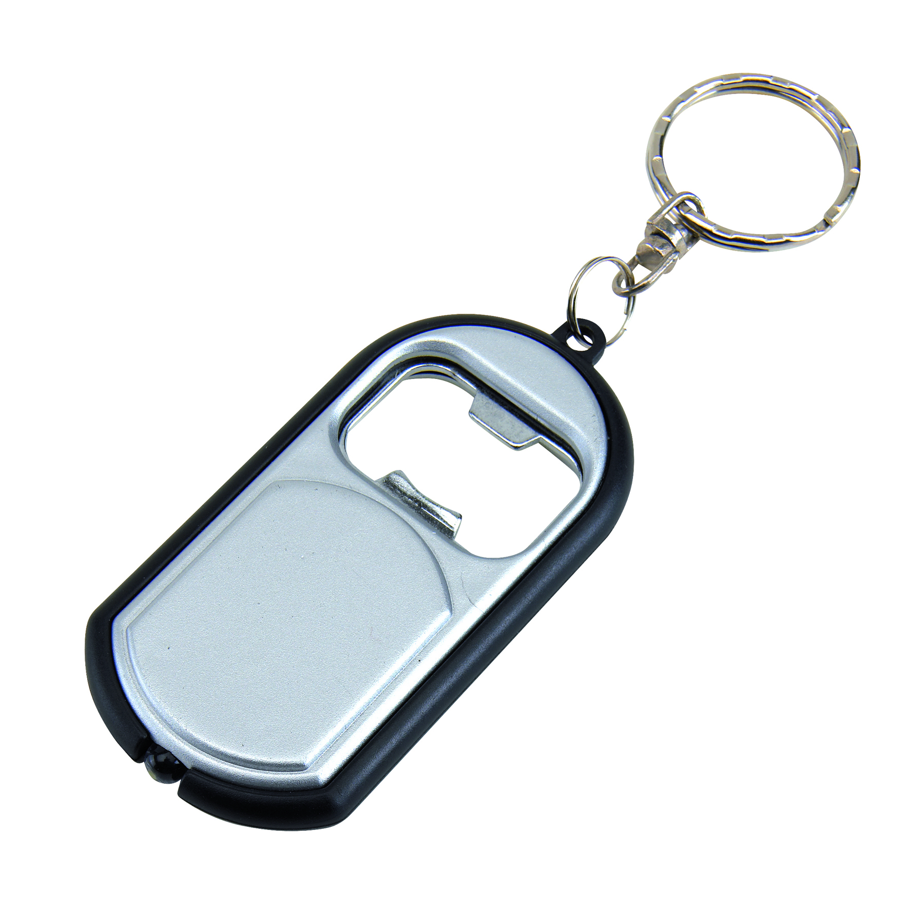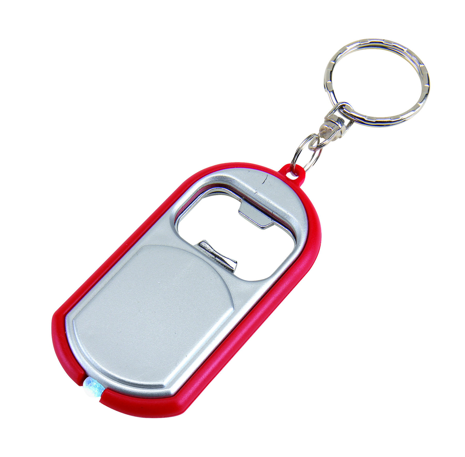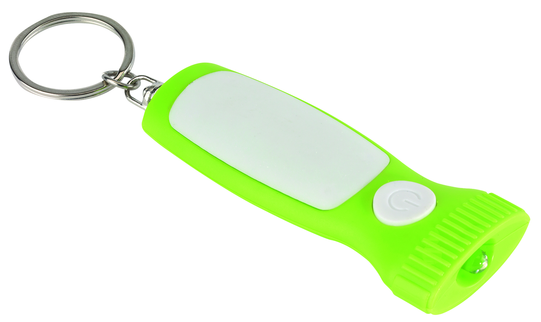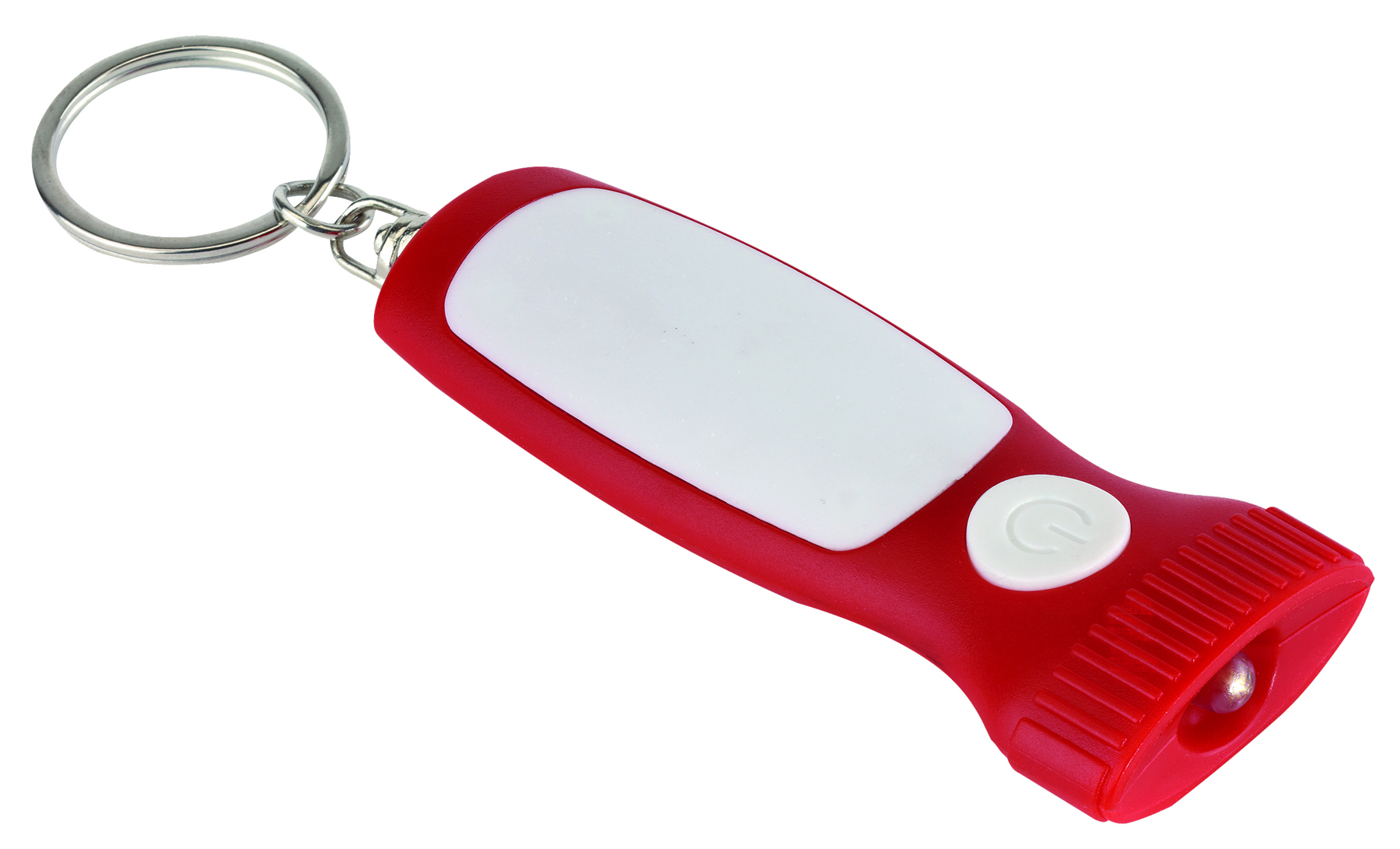 Aquila LED-Schlüssellicht. Einzelnes weißes LED-Schlüssellicht in der Form einer Glühbirne. Metall-Schlüsselring mit einem Durchmesser von 25 mm. Mit Batterien. ABS-Kunststoff.