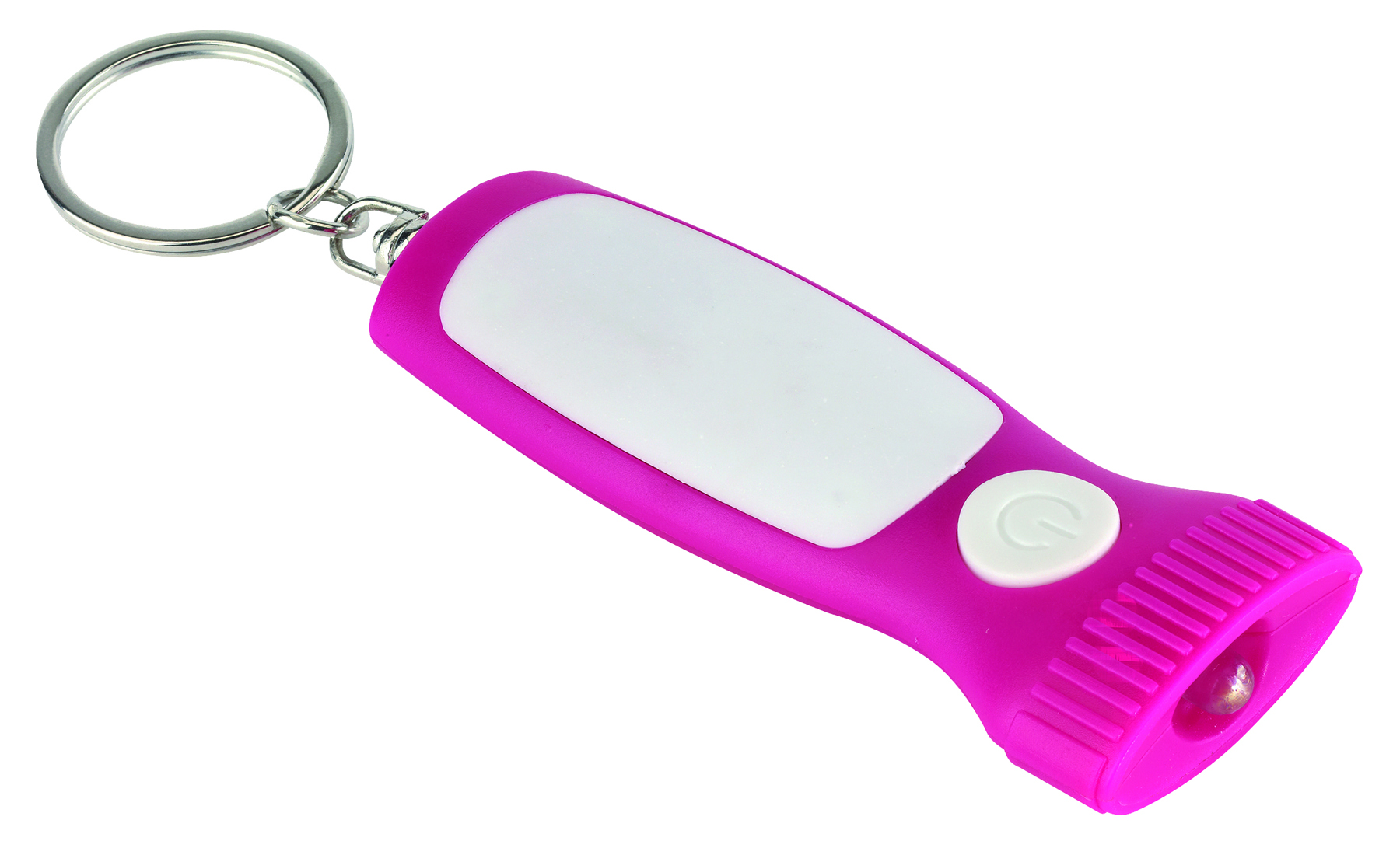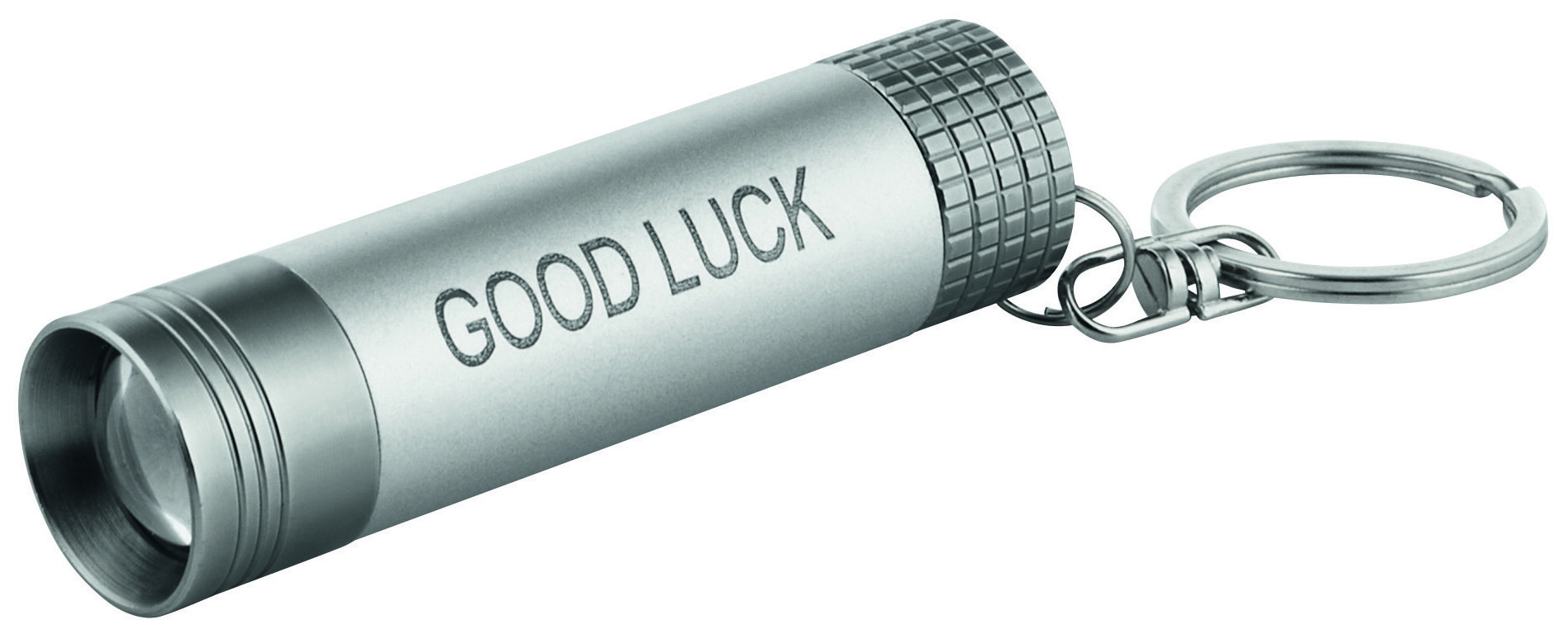 Kompaktes Schlüssellicht mit Weitleuchtfunktion, ausgefahren wird das eingravierte Logo schön beleuchtet. Logobeleuchtung, spritzwasser-/überspannungsgeschützt, VPE 200. Knopfzellen, Designkarton