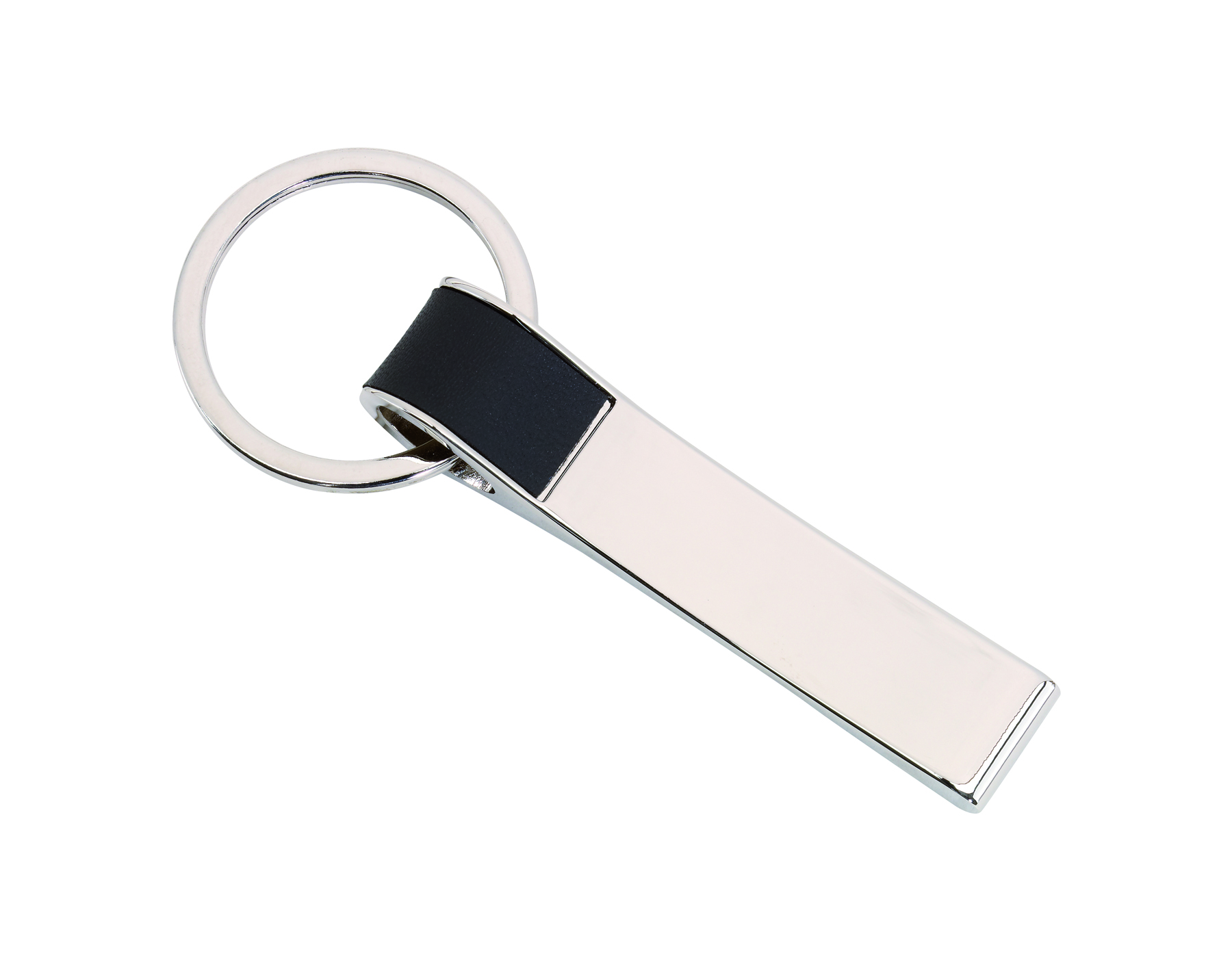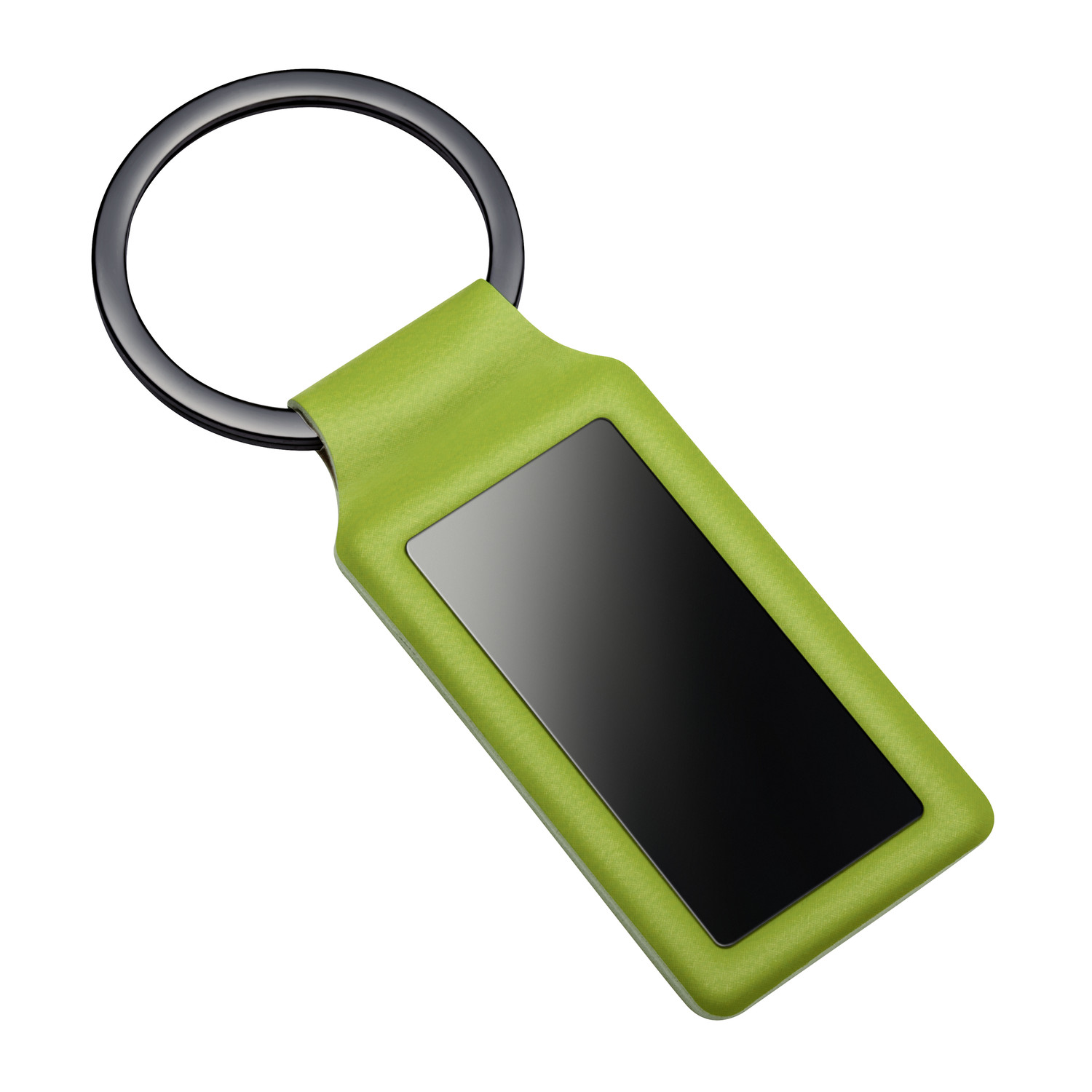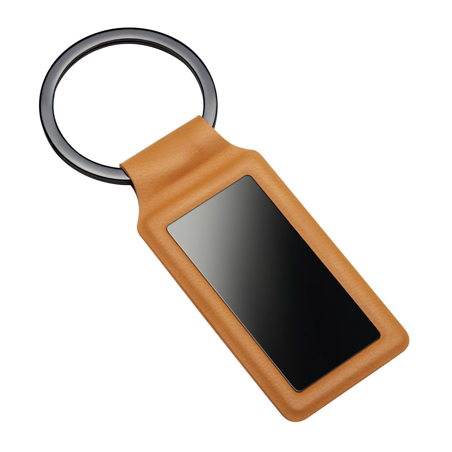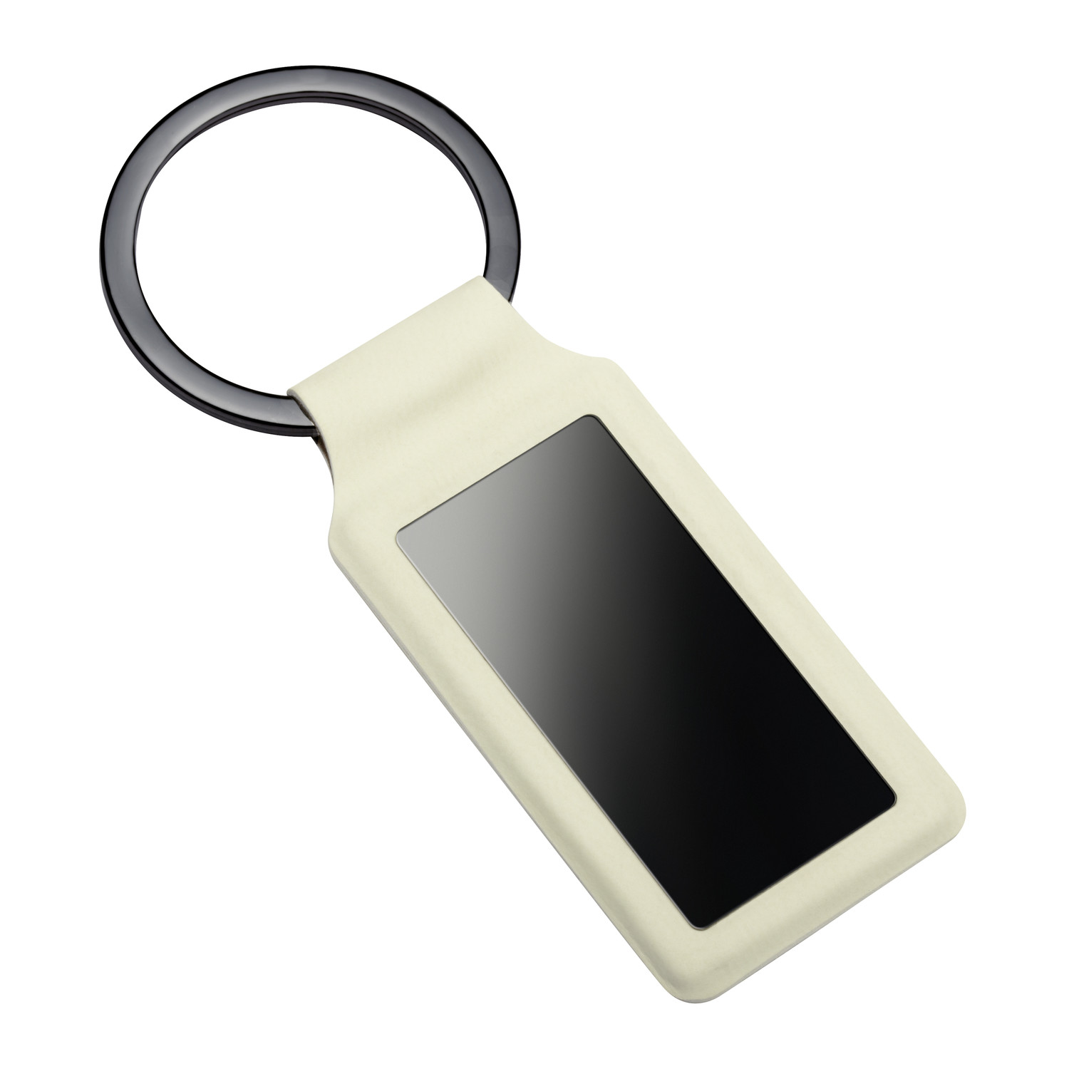 Metall-Schlüsselanhänger mit mattgebürstetem Innenteil, rechteckig. Ihre Werbung kann durch eine dezente Lasergravur auf dem Innenteil angebracht werden.