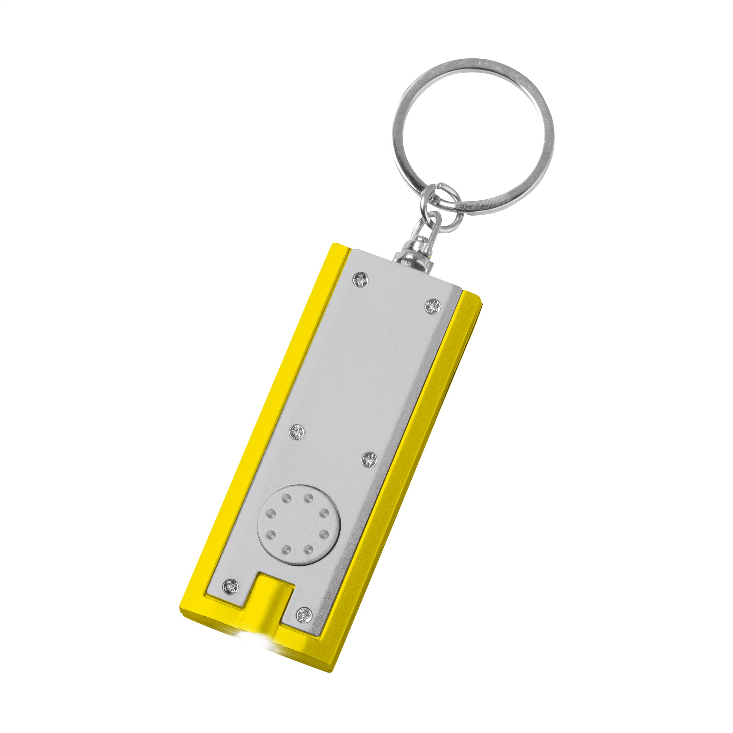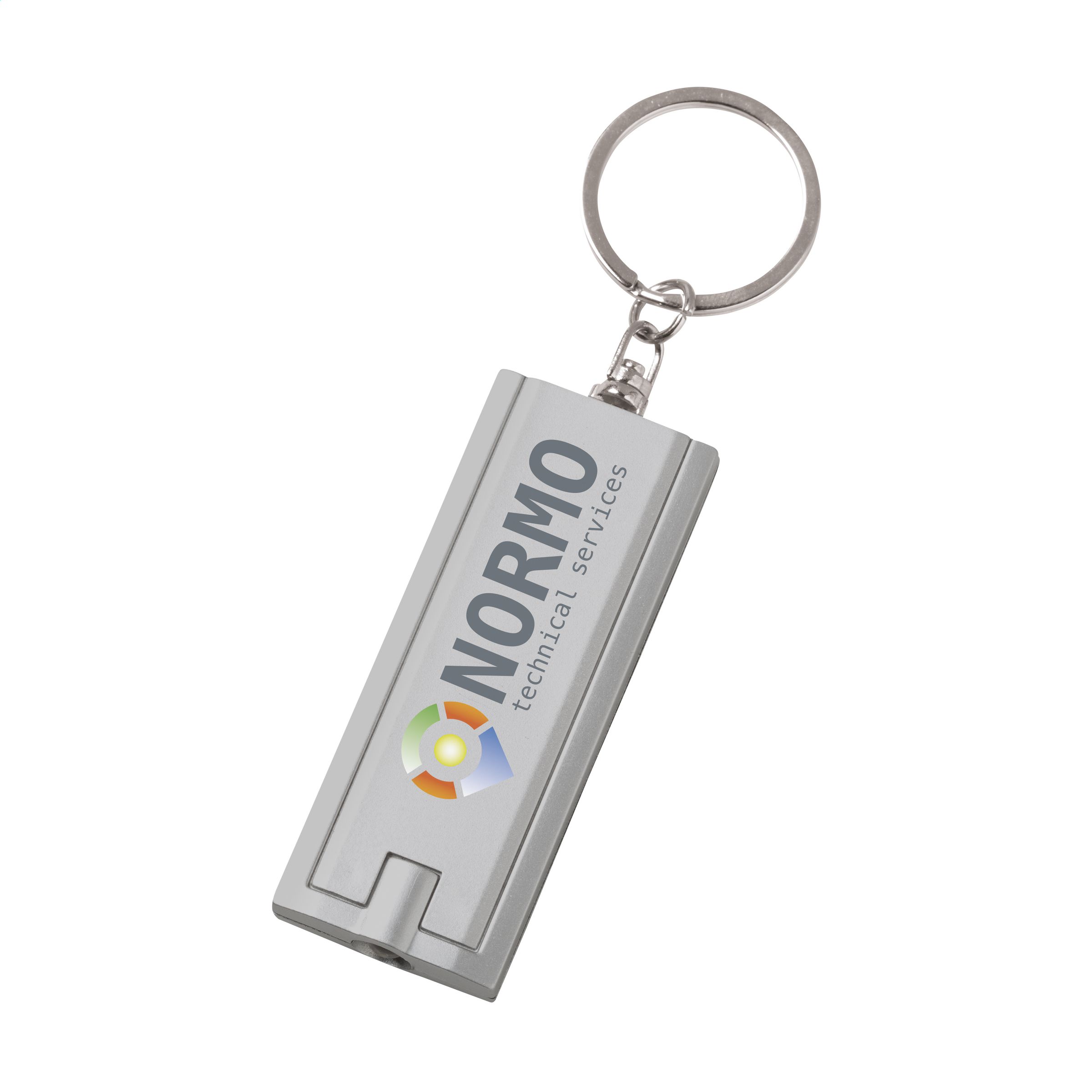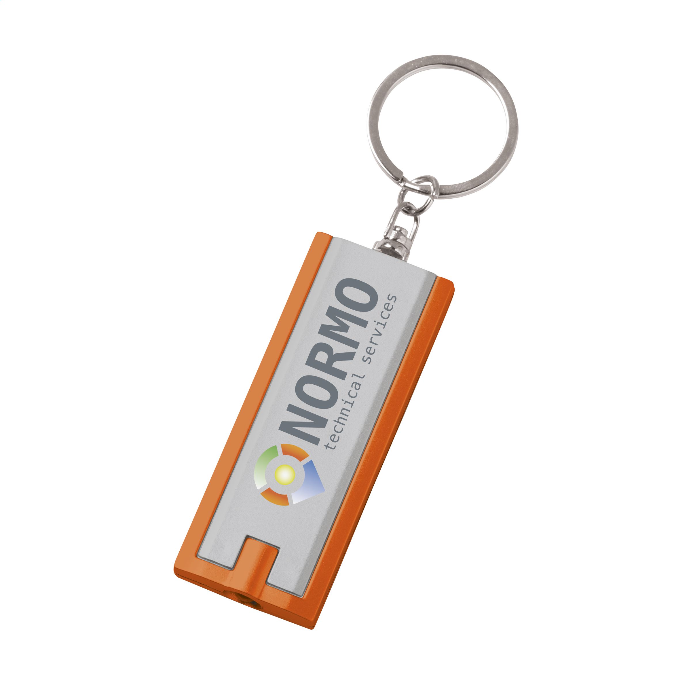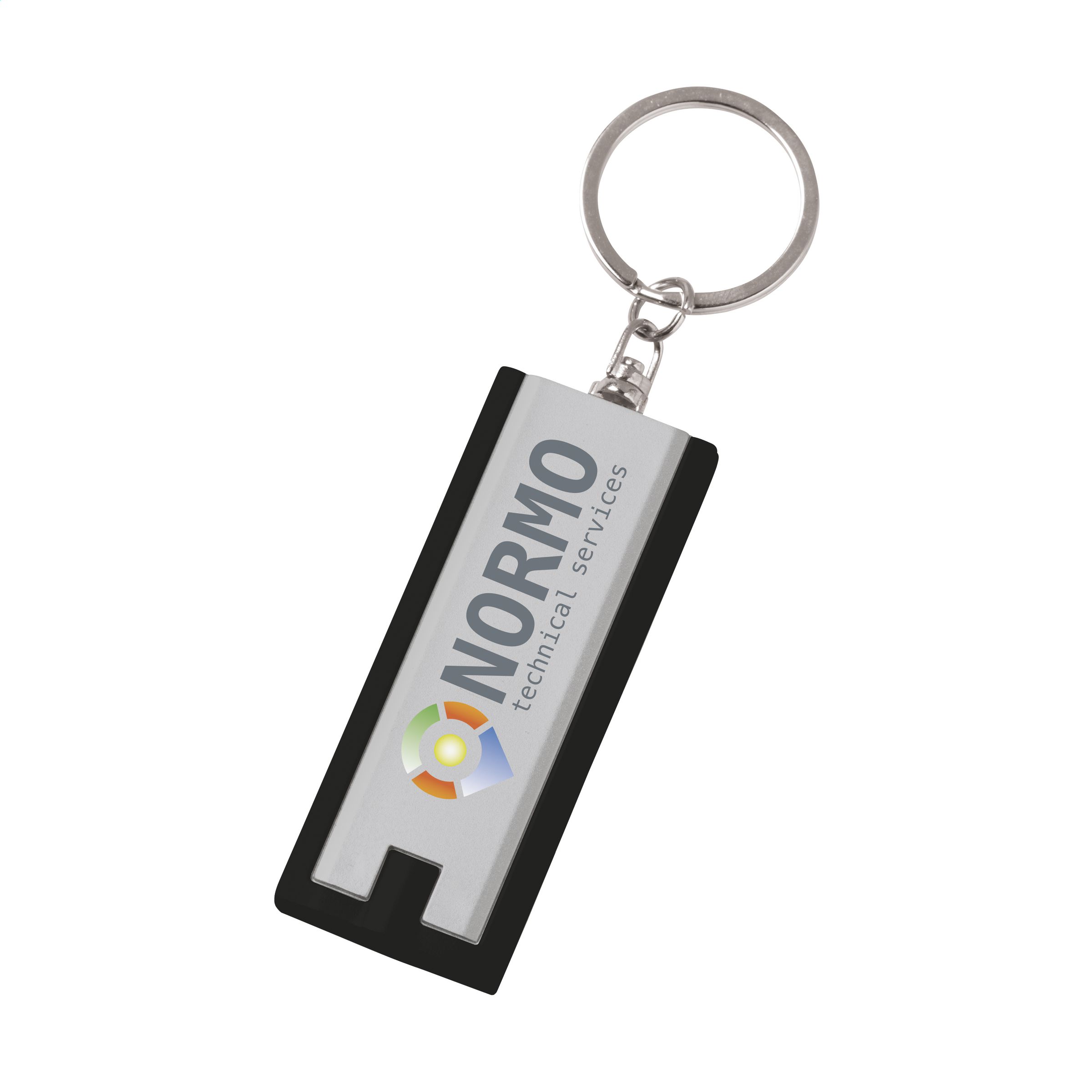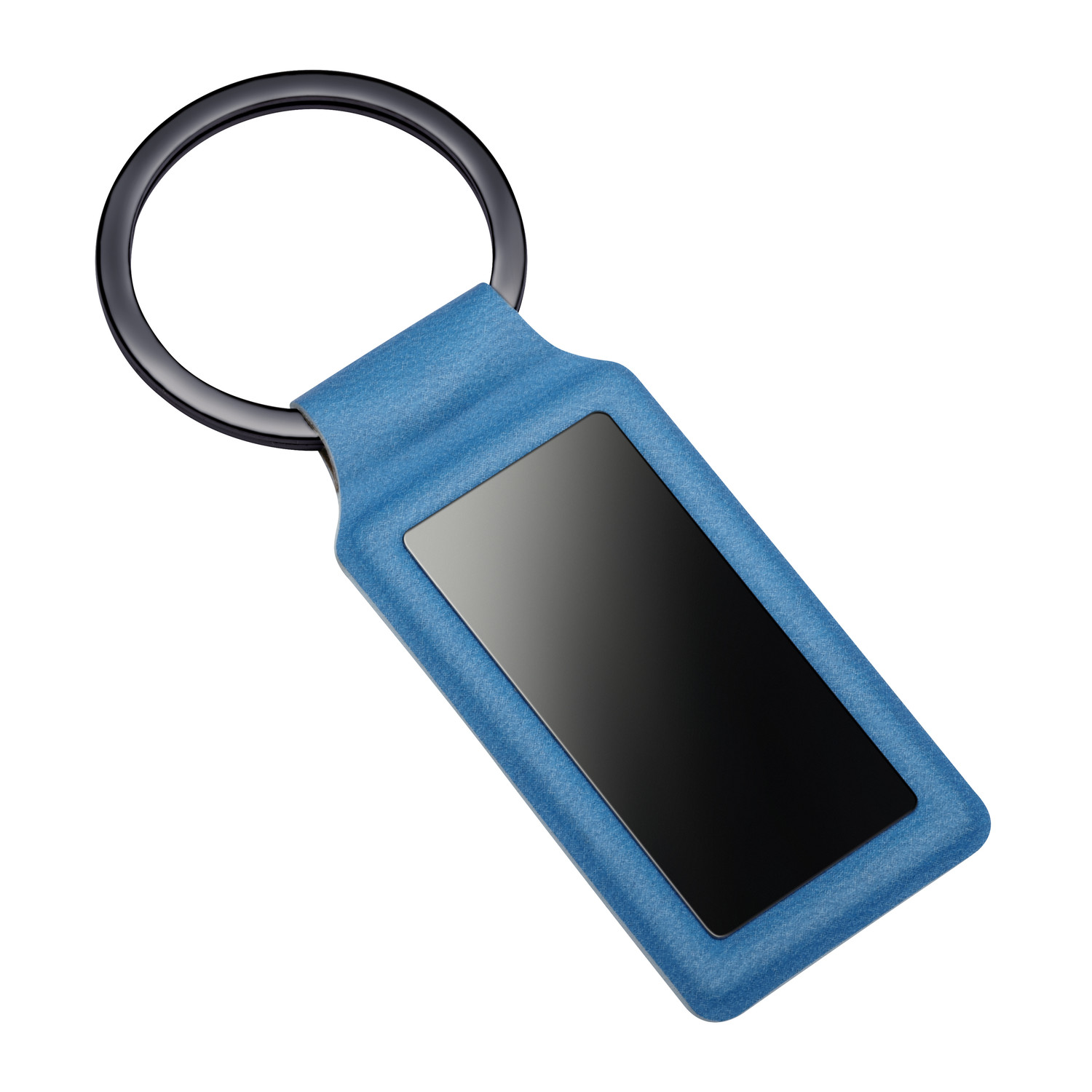 Metall-Schlüsselanhänger mit mattgebürstetem Innenteil, rechteckig. Ihre Werbung kann durch eine dezente Lasergravur auf dem Innenteil angebracht werden.