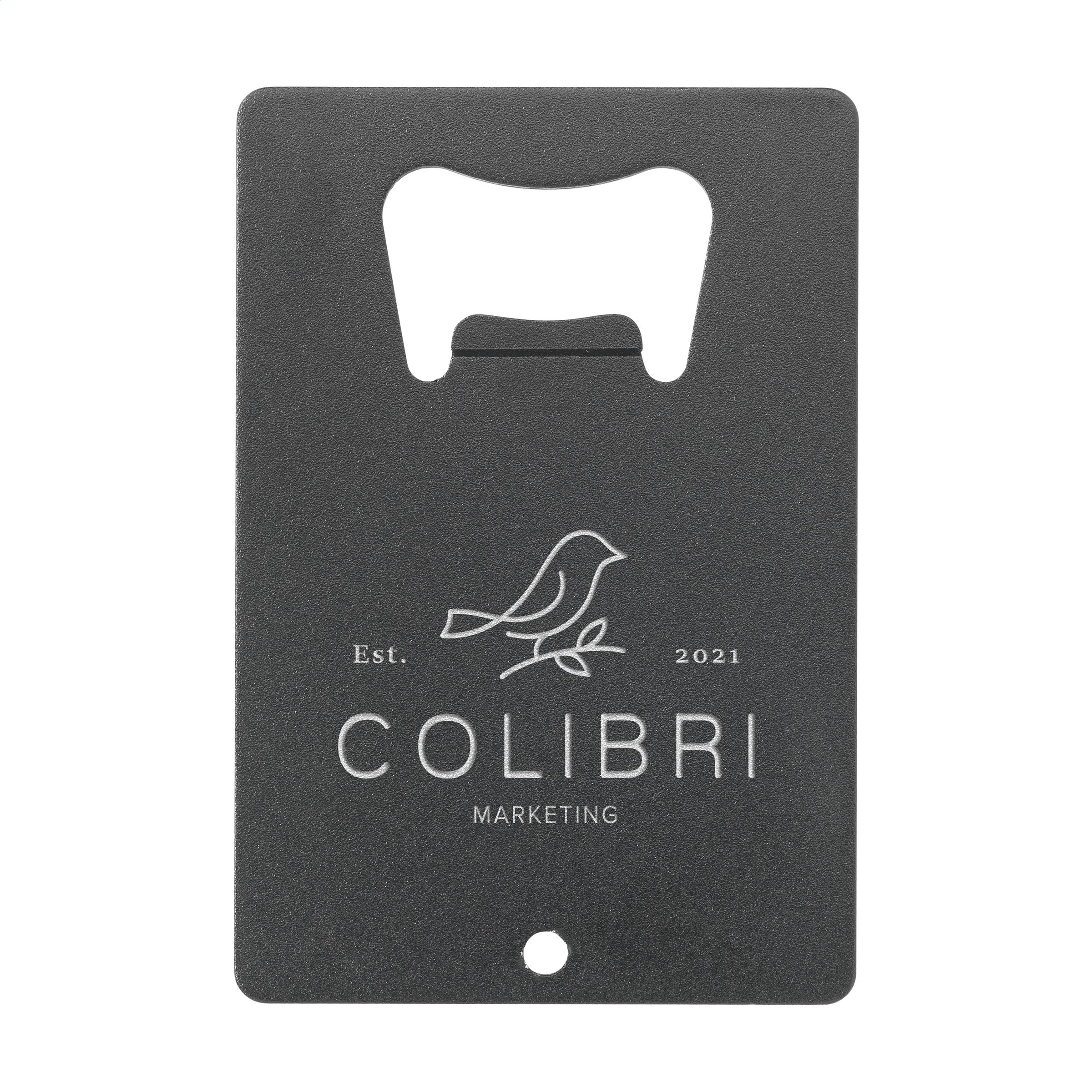 WoW! Flaschenöffner aus recyceltem Aluminium. Der Öffner in praktischem Kreditkartenformat lässt sich mühelos an einem Schlüsselring befestigen. Durch die Verwendung von recyceltem Aluminium werden bei der Herstellung dieses Produkts weniger neue Rohstoffe verwendet. Das bedeutet weniger Energieverbrauch und weniger Wasserverbrauch. Eine verantwortungsvolle Wahl.
