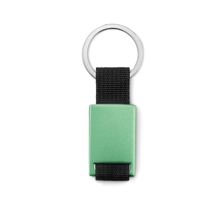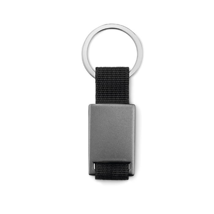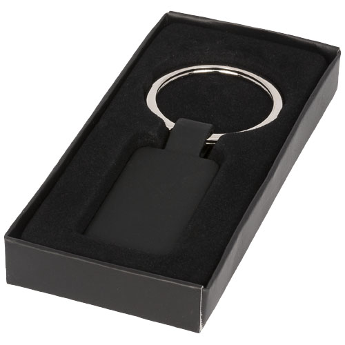 Tokyo Schlüsselanhänger aus Metall. Elegante Schlüsselkette aus Metall mit weicher gummierter Oberfläche. Platte aus Zinklegierung und Spaltring mit Gummibeschichtung.
