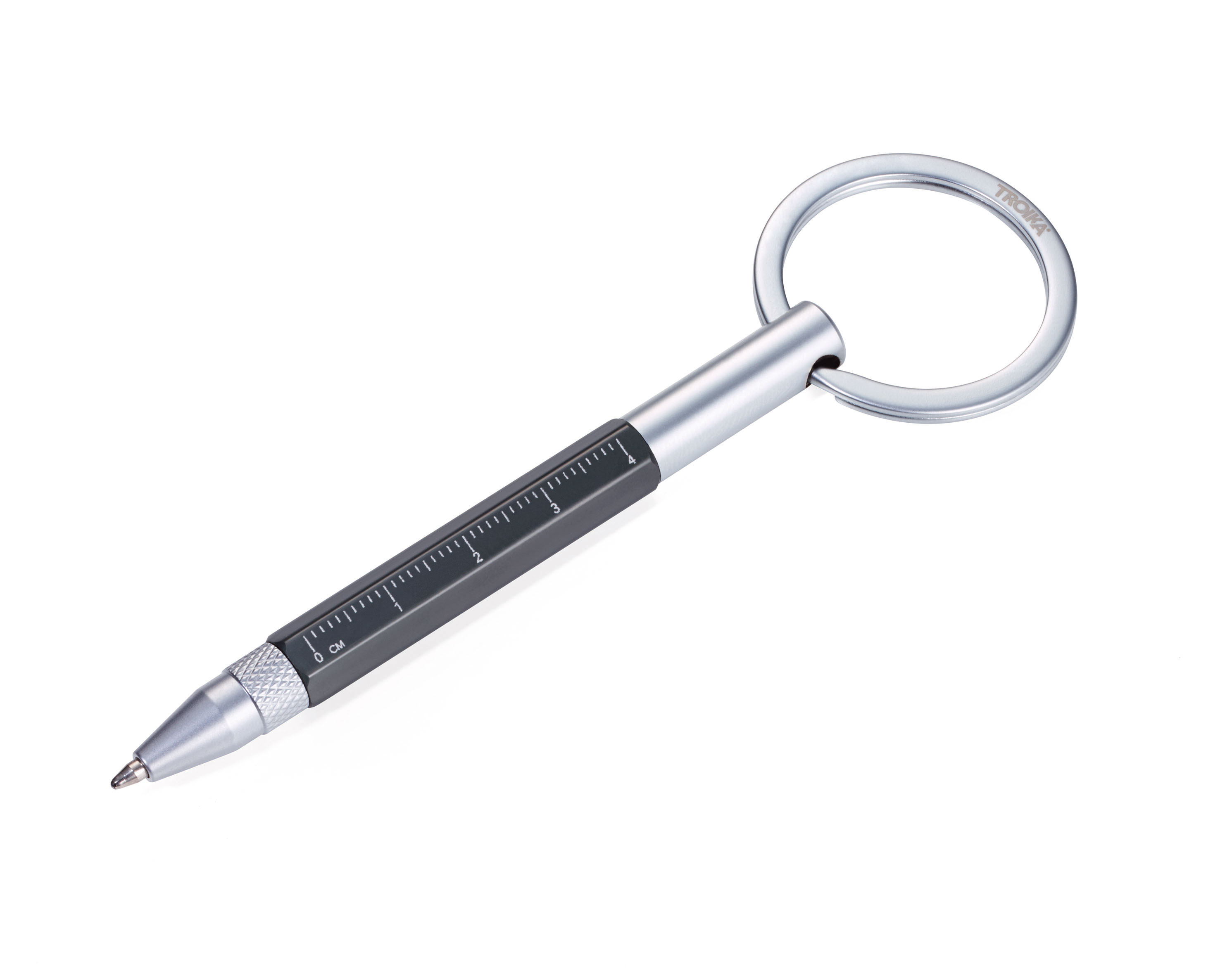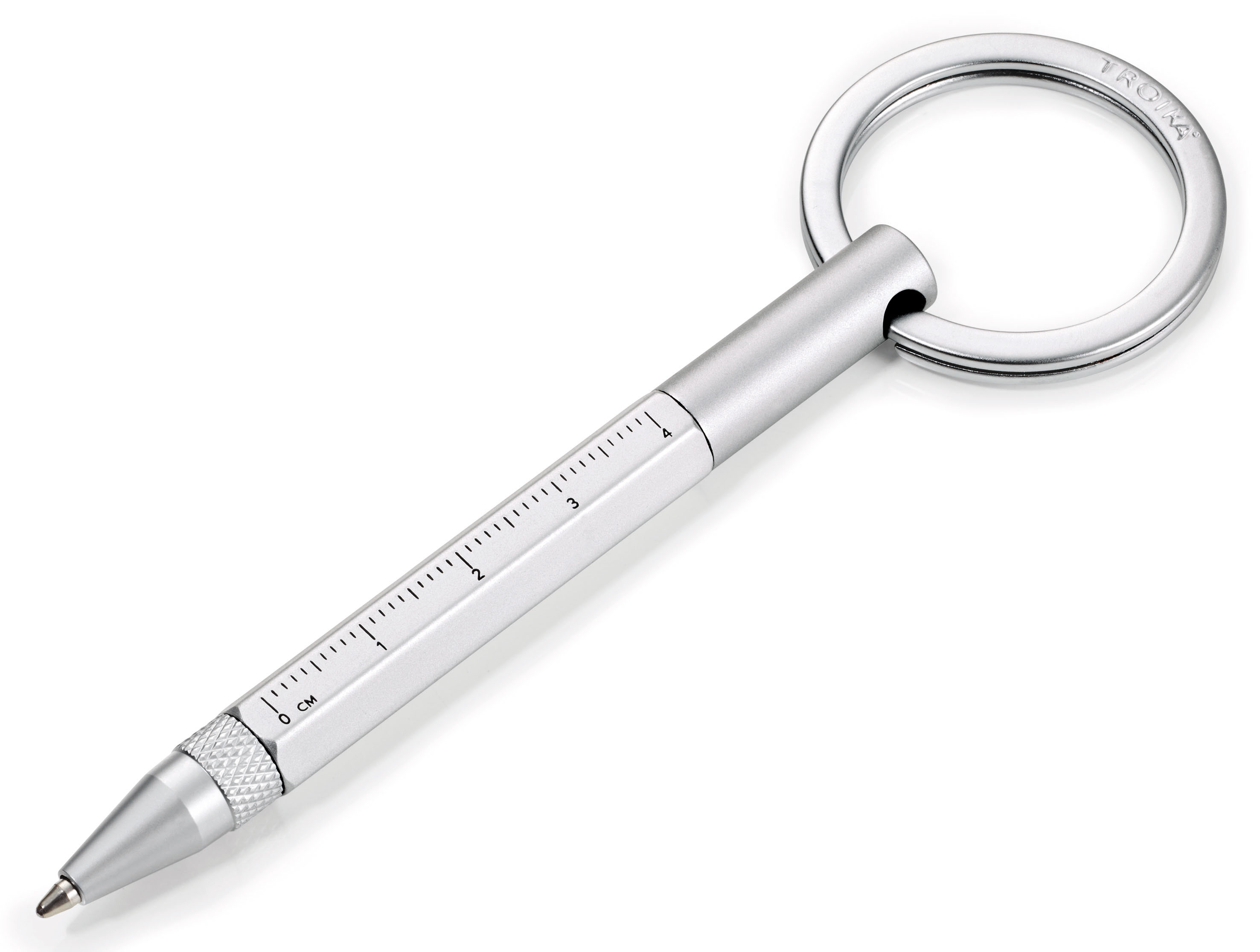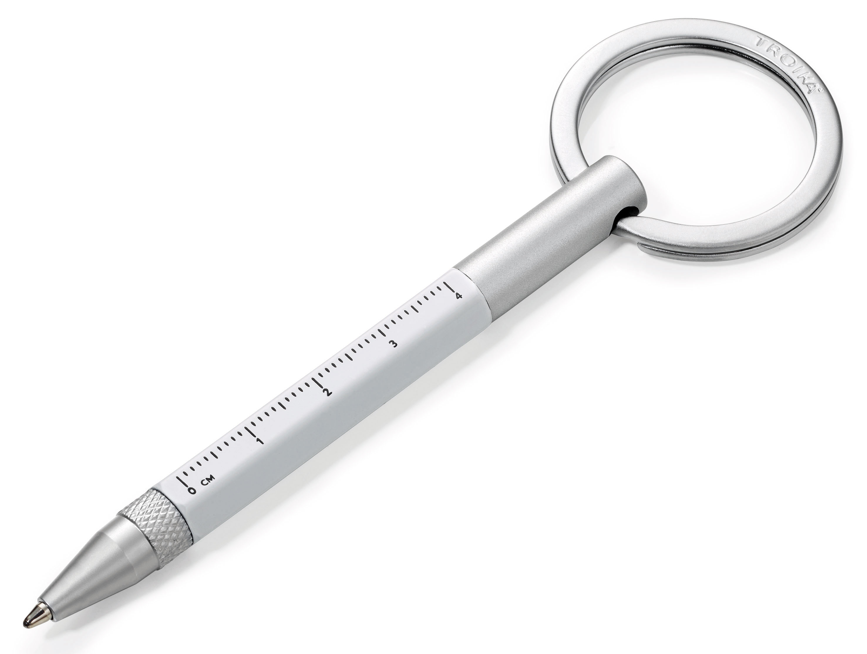 Schlüsselanhänger mit Micro-Multitasking-Kugelschreiber, Zentimeter- und Zoll-Lineal, Schlitz- und Kreuzschraubendreher magnetisch gehalten, Stylus, schwarze Mine, Aluminium/Messing/Stahl, weiß/silber Schlüsseltechnologie. Ob analog oder digital, der pfiffige Filigrantechniker behauptet sich überall. Kugelschreiber, Schraubendreher, Skala und ein Stylus fürs Tablet oder Smartphone – alles an Bord. Und an Ihren Schlüsseln hängt der Micro Construction geradezu. Und sie an ihm. In sechs edlen Trendfarben.