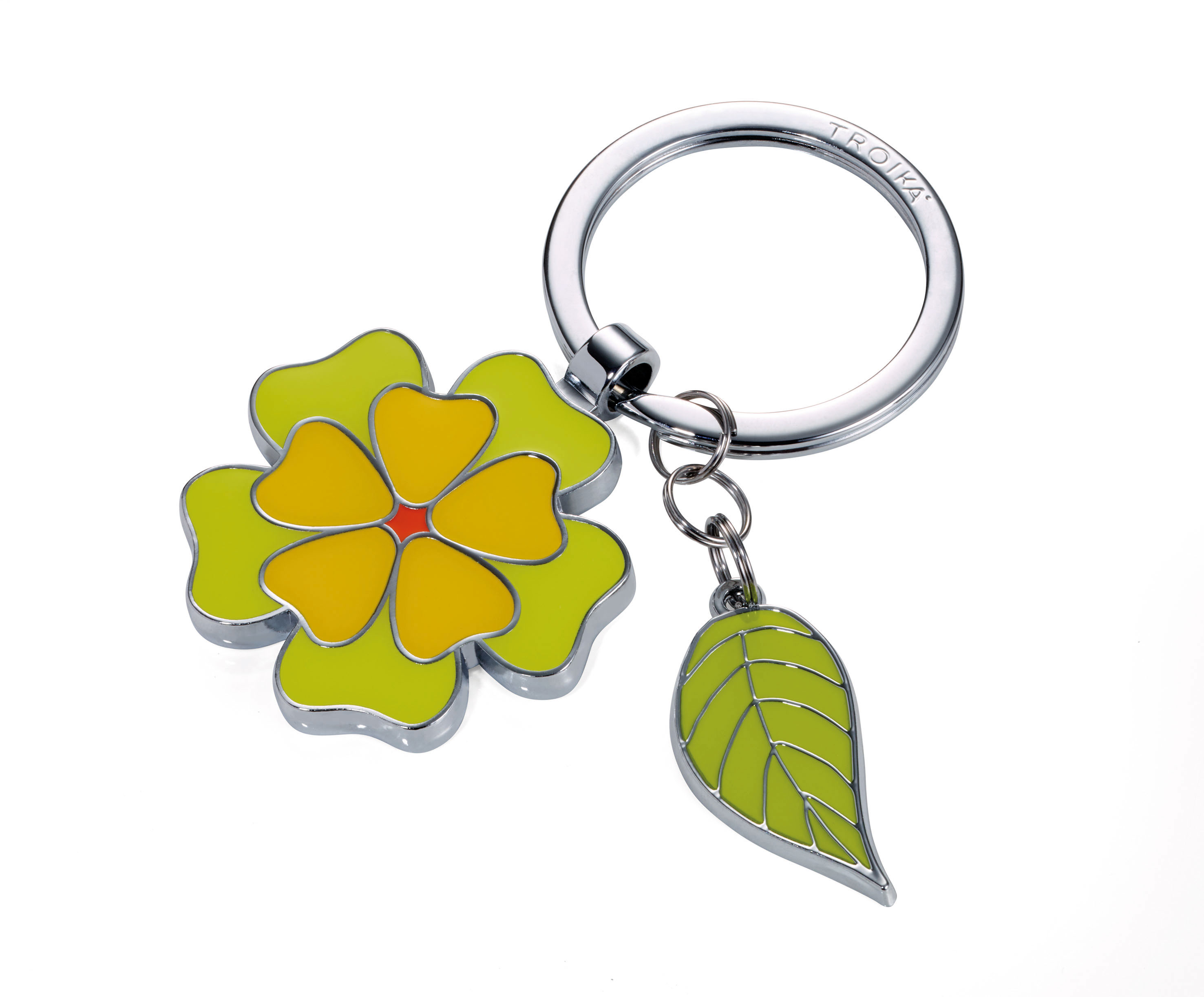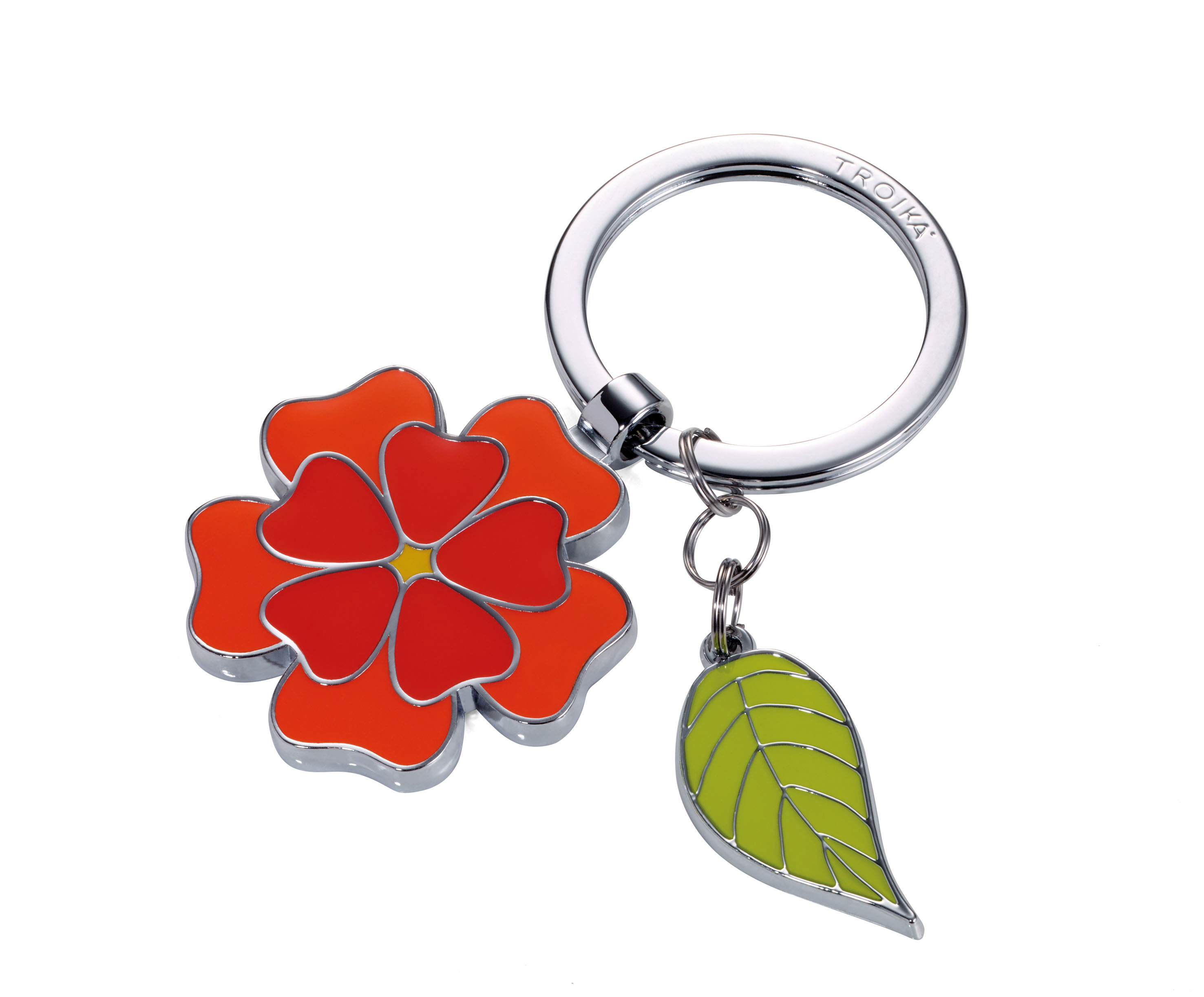 Schlüsselanhänger mit 2 Anhängern, Blume, Blatt, Metallguss/Emaille, verchromt, glänzend, orange Zurück in die Sechziger und Siebziger war noch nie so hipp wie heute! If you’re going to San Francisco … Flower-Power neu interpretiert - lebendige Formen in fröhlichen Farben. Ein Trendsetter!