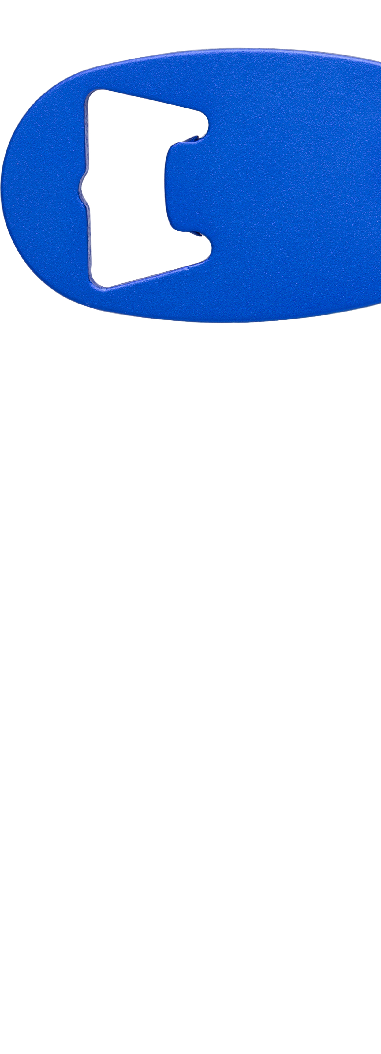 Schlüsselanhänger aus Aluminium, mit Flaschenöffner, Polyesterband, Schlüsselring und fünf kleinen Karabinerhaken in fünf verschiedenen Farben (Blau, Rot, Gold, Grün und Schwarz).