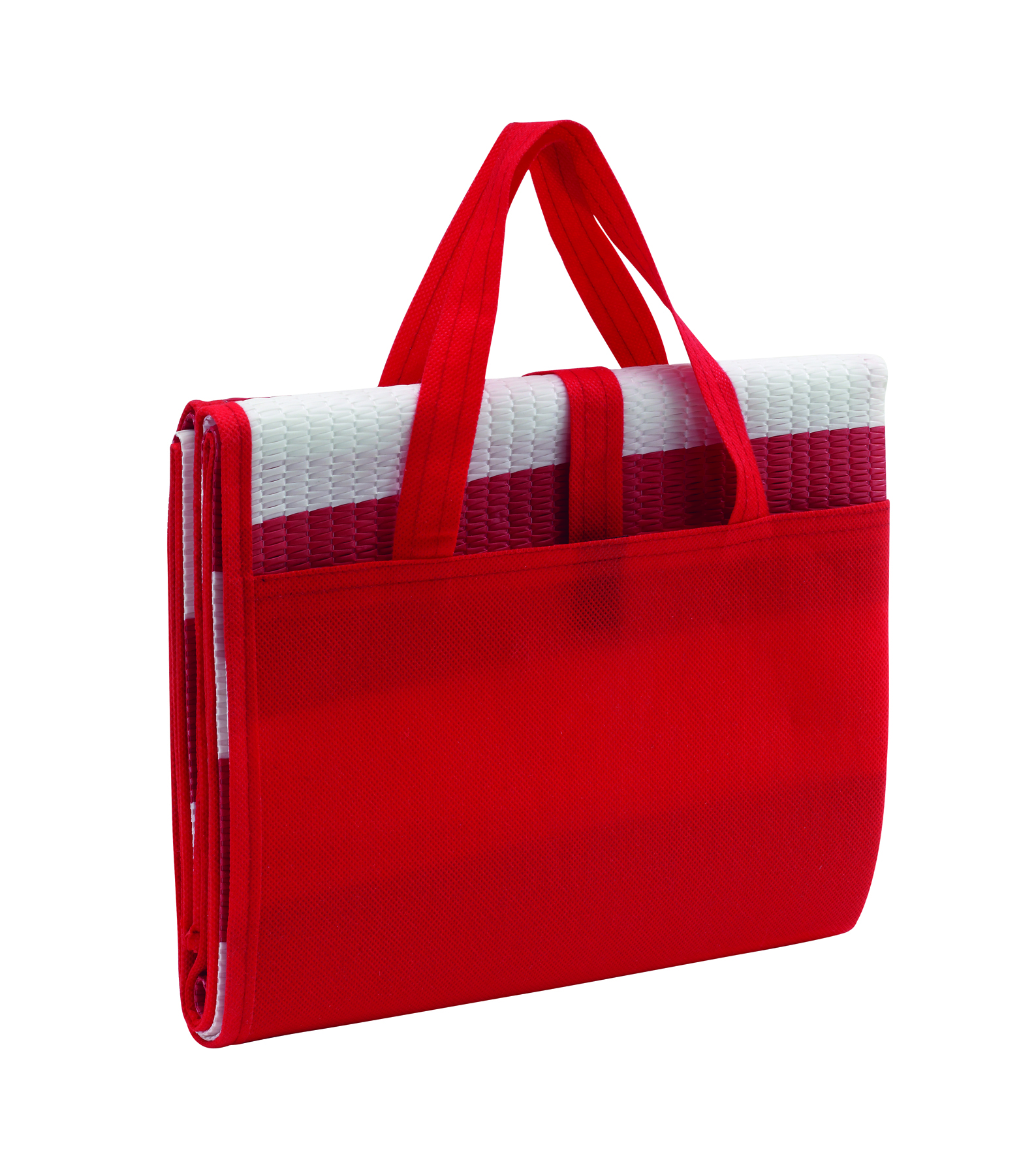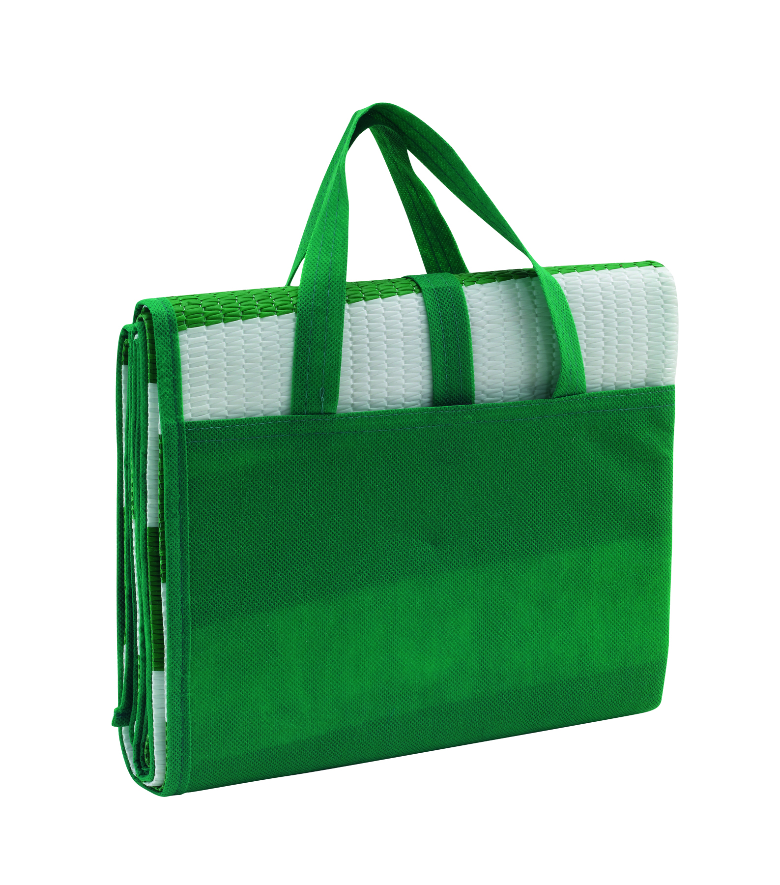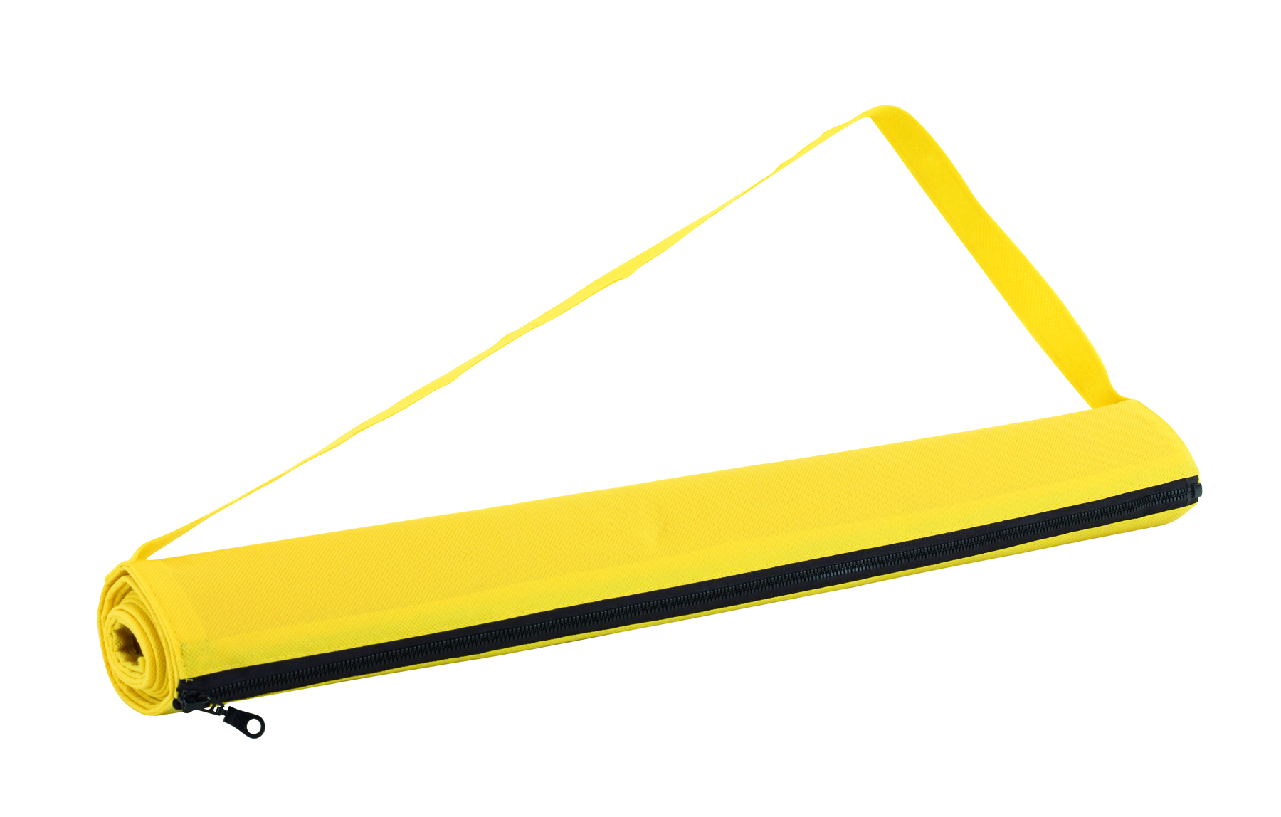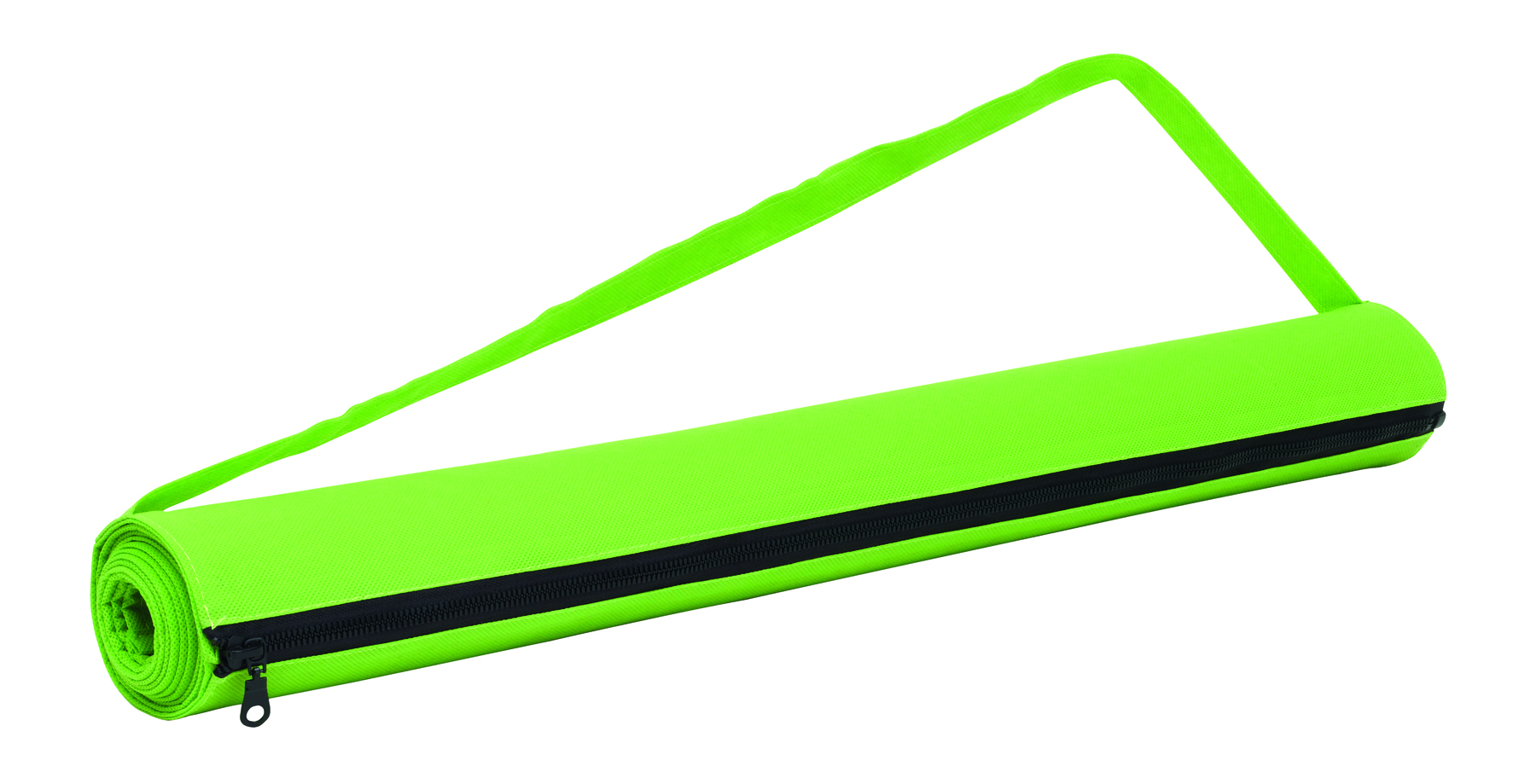 Strandmatte (180 x 60 cm) in trendigen Farben aus wasser- und schmutzabweisendem Kunststoffgeflecht. Lässt sich mit dem integrierten Reißverschluss und dem verstellbaren Tragegurt super transportieren. Ihre Werbung drucken wir im Siebdruck unterhalb des Tragehenkels.