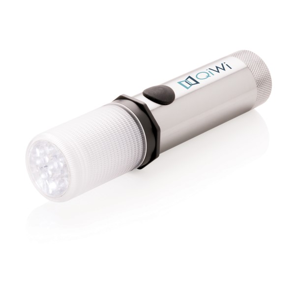 1W Taschenlampe, die auch als Notfallleuchte verwendet werden kann. Mit 3 Leuchtmodi: rotes Licht, rotes Blinklicht und weißes Licht der Taschenlampe. Mit Magnet an der Rückseite. Inkl. Batterien