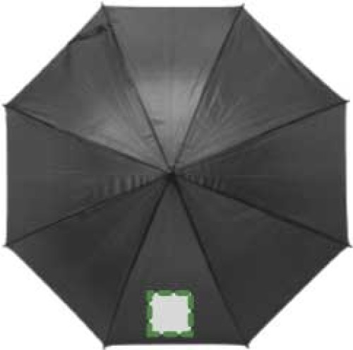 Der Automatik-Regenschirm hat eine Bespannung aus Polyester (170T) und besitzt einen Schaft aus Metall, Rippen aus Fiberglas und einen Handgriff aus EVA-Schaum.