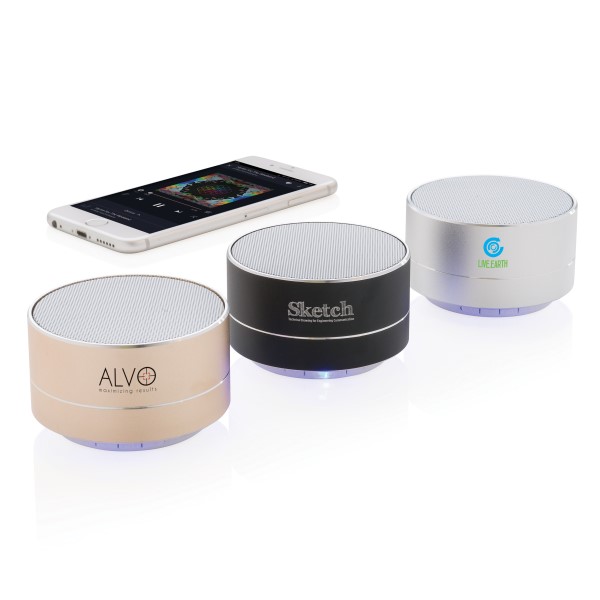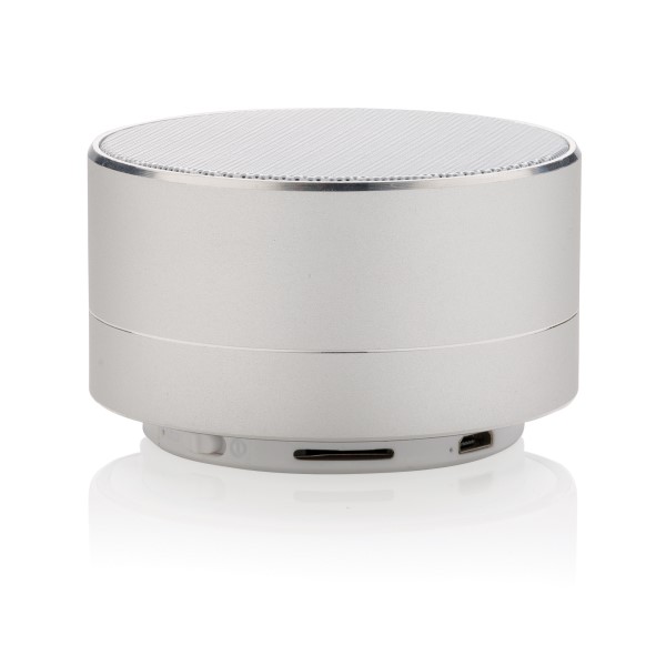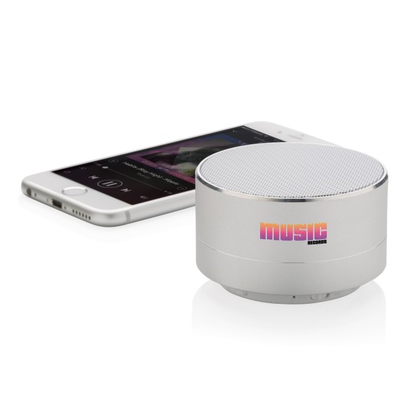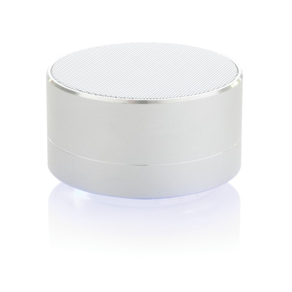 3W Lautsprecher aus Aluminium mit eingebauter 300 mAh Lithiumbatterie. Bis zu 10m Reichweite und bis zu 4 Stunden Musikhören mit nur einem Ladevorgang. Stilvolles blaues Licht am Boden. Beantworten Sie eingehende Anrufe mit der praktischen Abnehmefunktion.