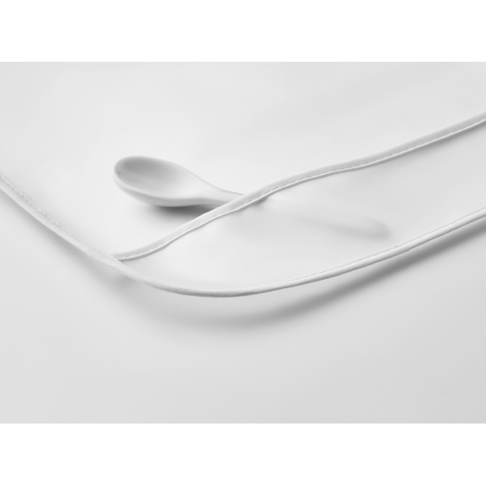 Baby-Lätzchen. Kleine Fronttasche. PEVA mit farbigem Polyester-Saum.